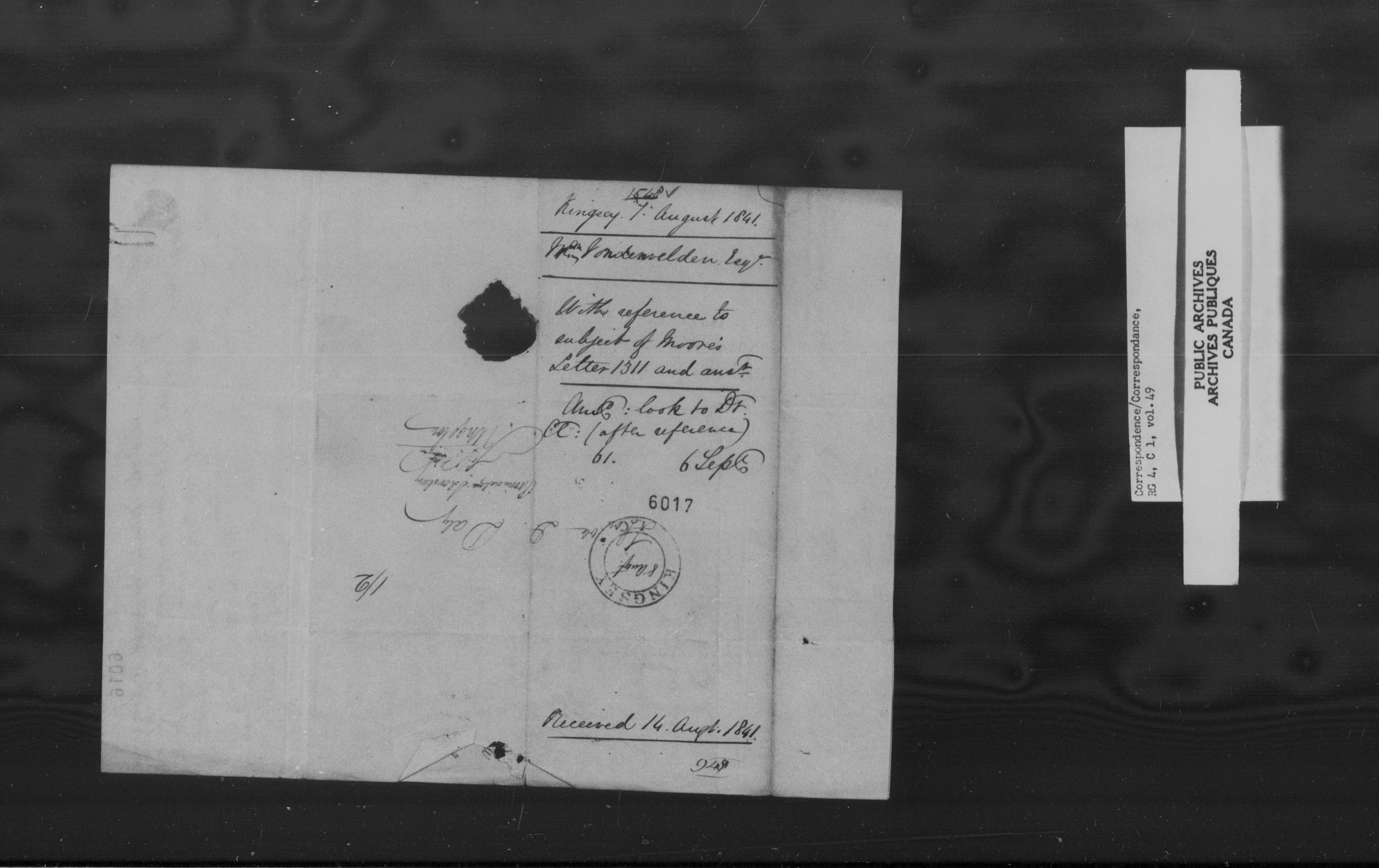 Canada East : Provincial Secretary numbered correspondence files, 1839-1867 : C-10885