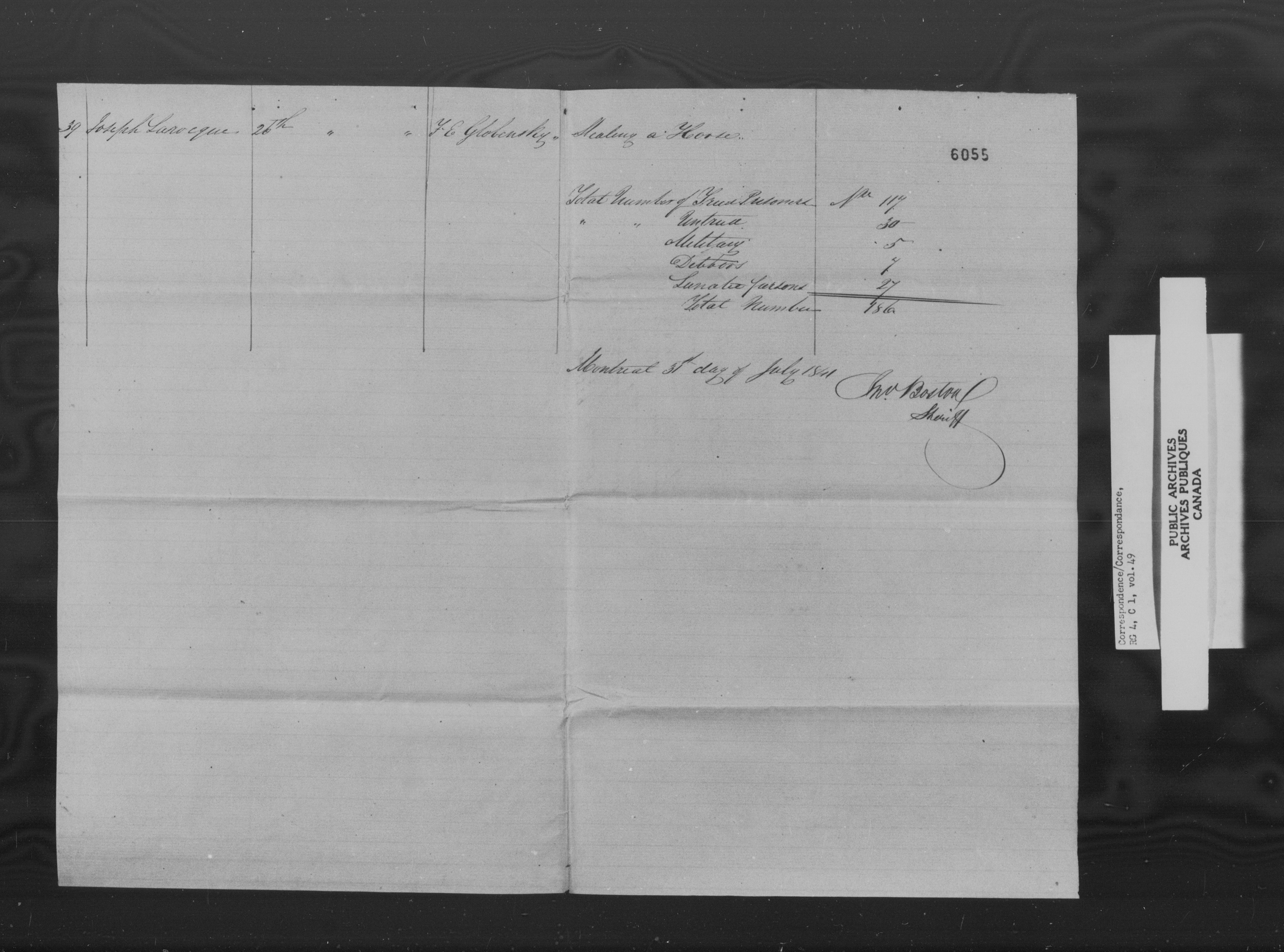 Provincial Secretary, Canada East : Numbered Correspondence Files, 1839-1867 - 10885