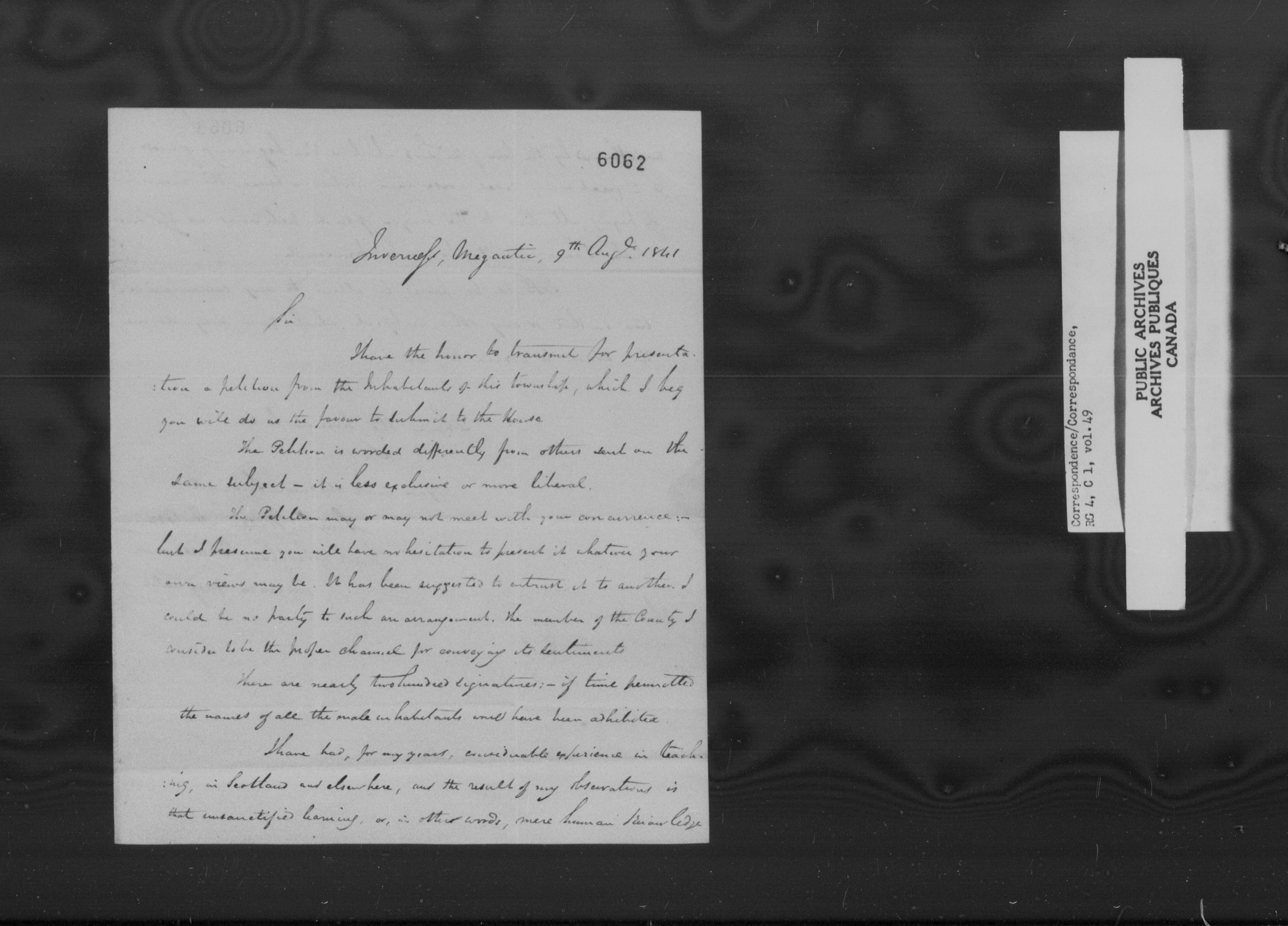 Provincial Secretary, Canada East : Numbered Correspondence Files, 1839-1867 - 10885