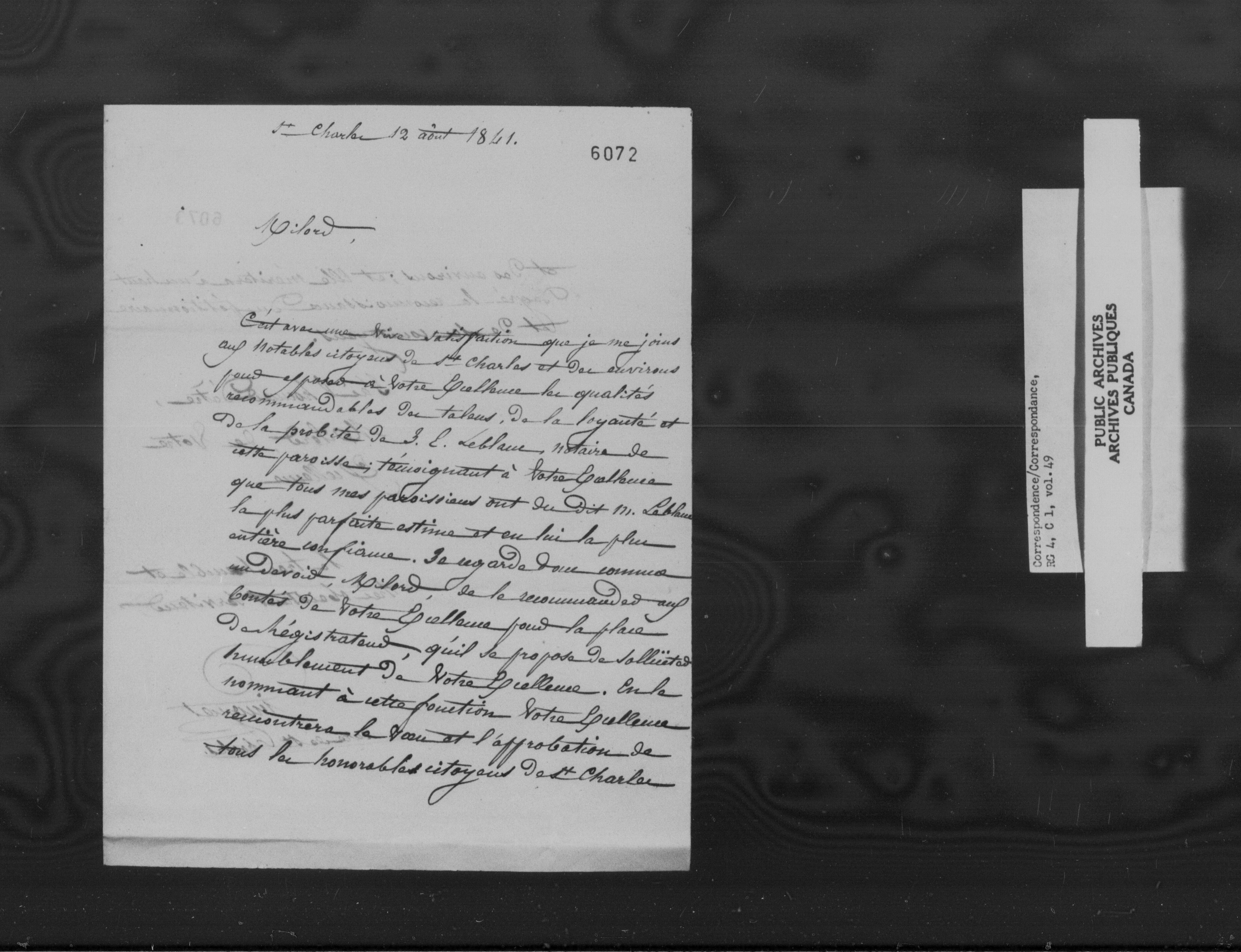 Provincial Secretary, Canada East : Numbered Correspondence Files, 1839-1867 - 10885