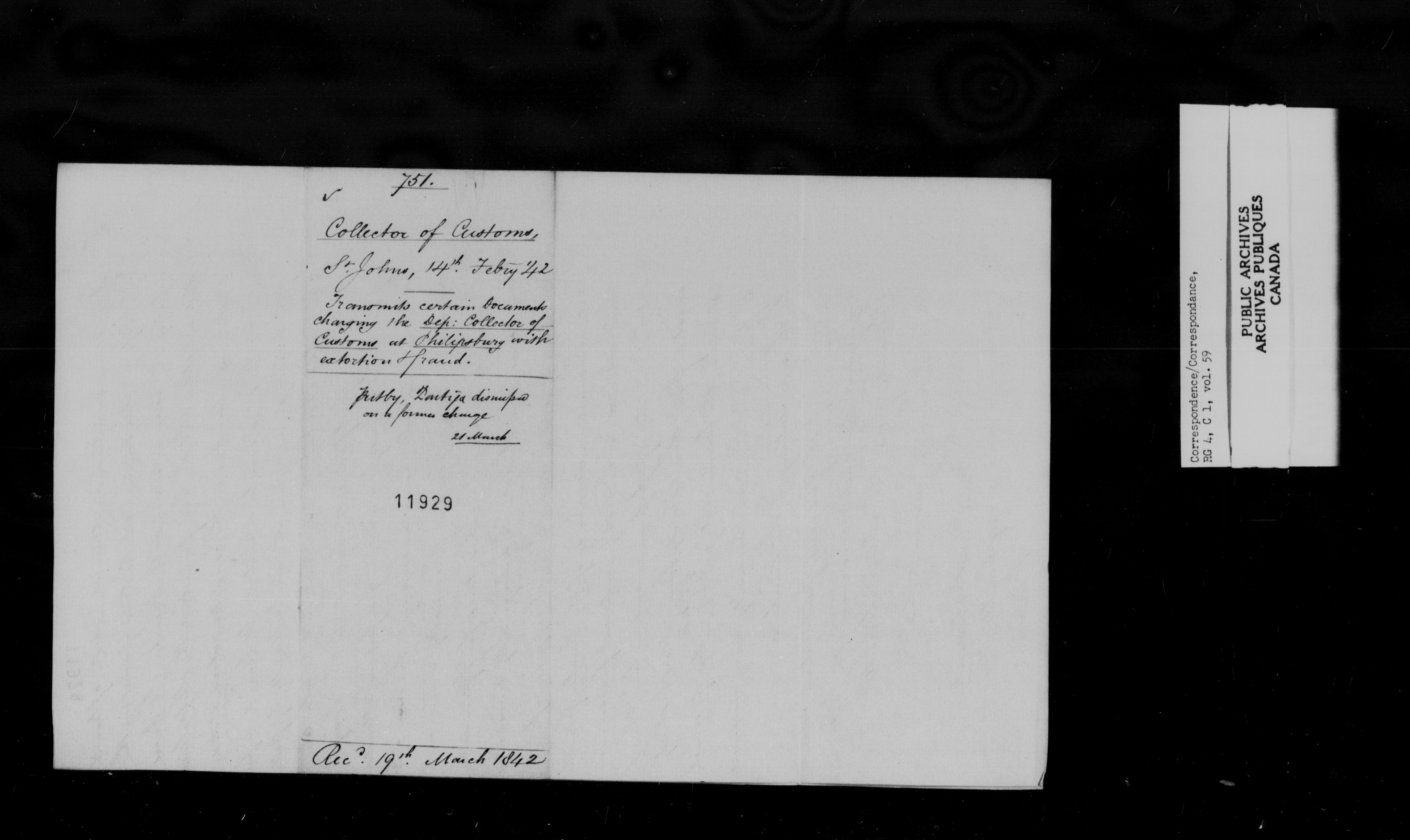 Provincial Secretary, Canada East : Numbered Correspondence Files, 1839-1867 - 10890