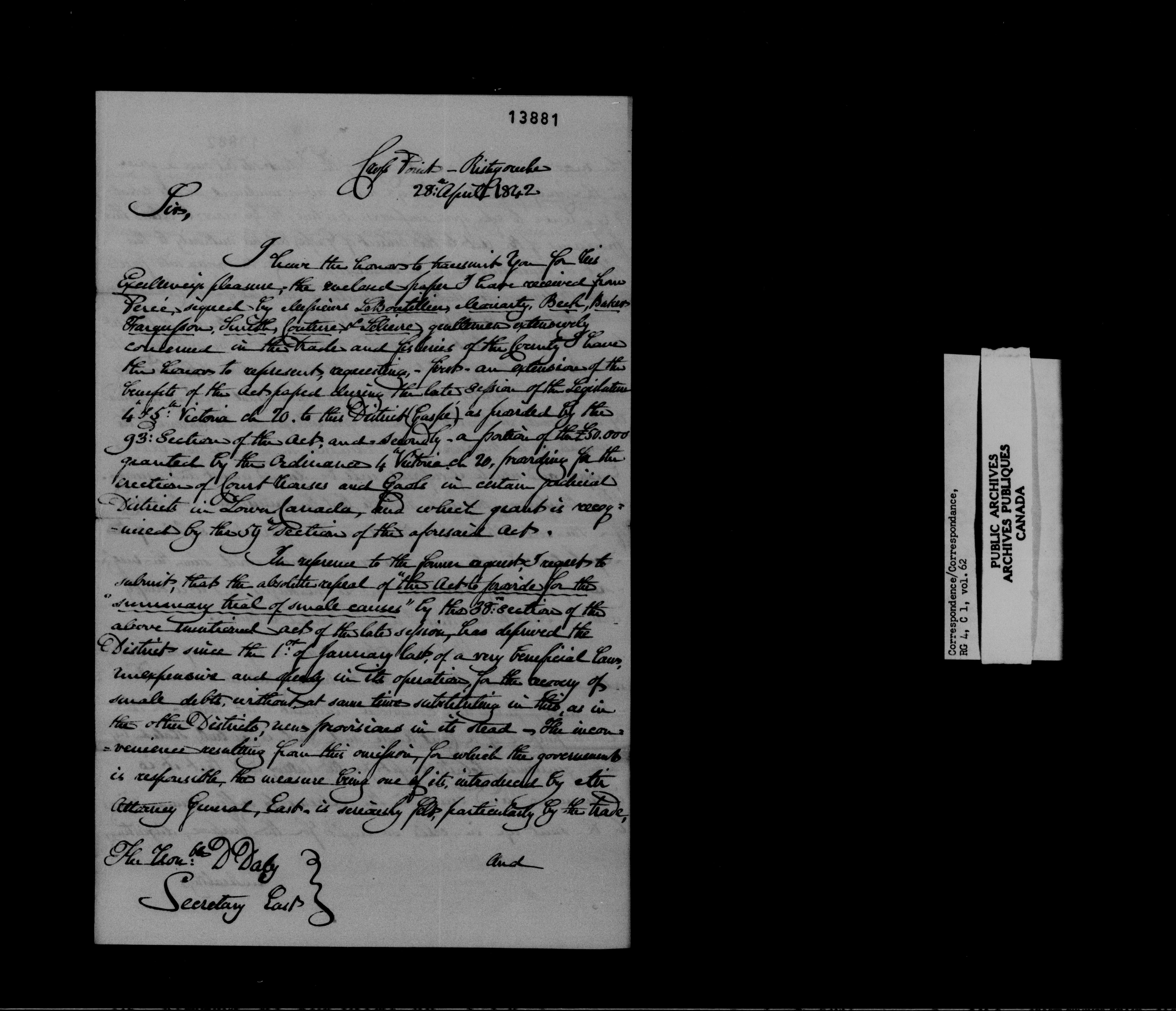 Provincial Secretary, Canada East : Numbered Correspondence Files, 1839-1867 - 10892