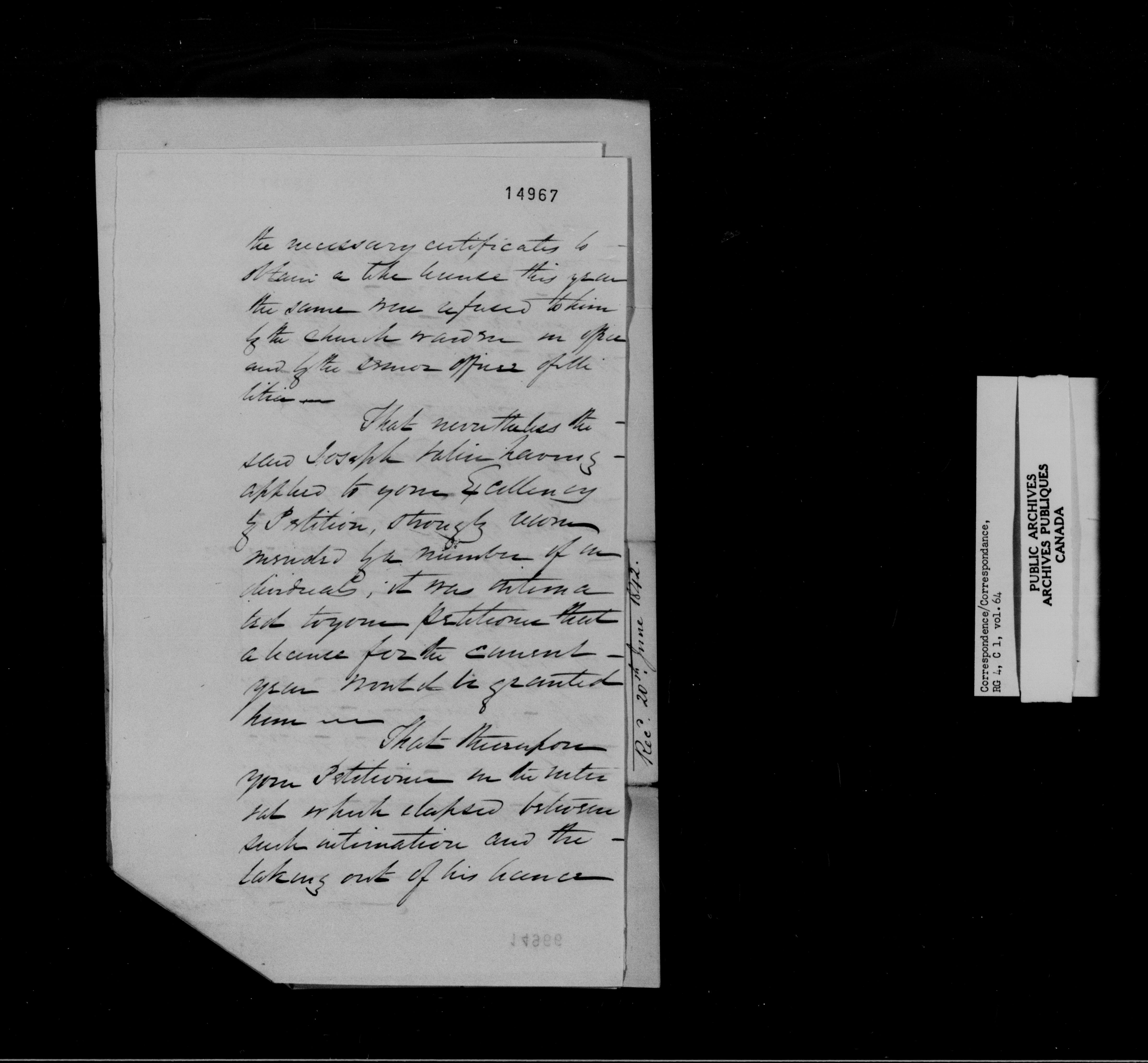 Provincial Secretary, Canada East : Numbered Correspondence Files, 1839-1867 - 10893