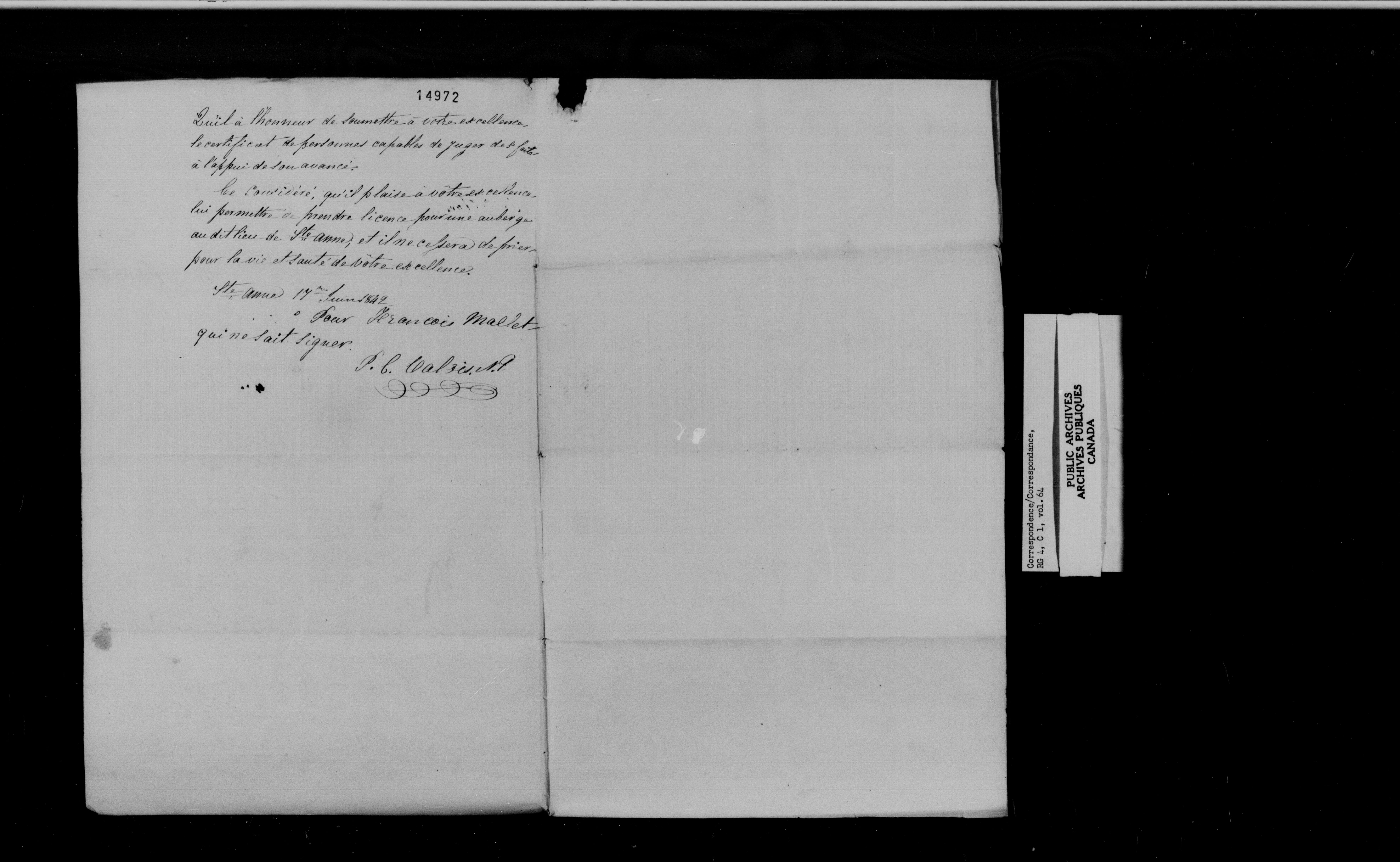 Provincial Secretary, Canada East : Numbered Correspondence Files, 1839-1867 - 10893