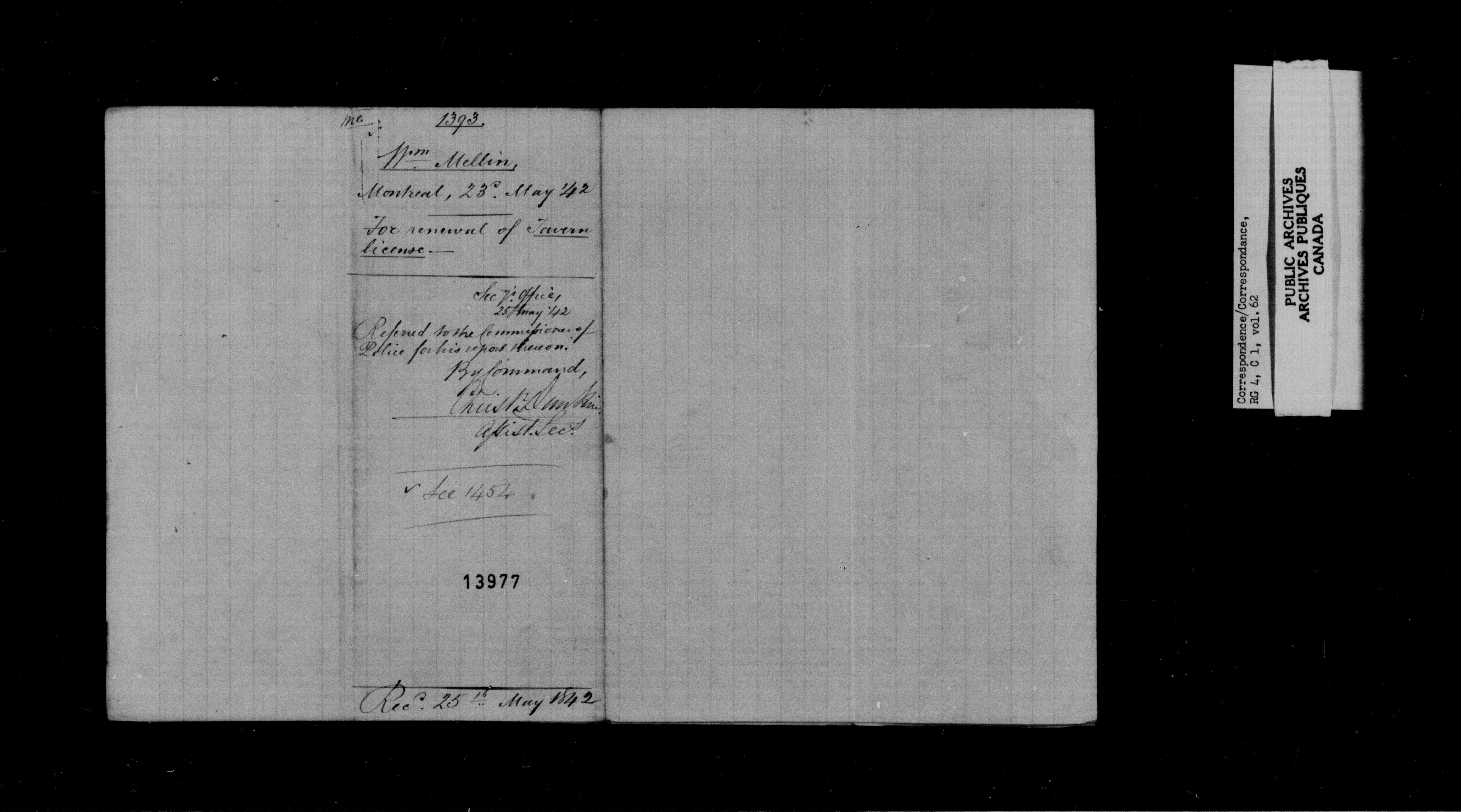 Provincial Secretary, Canada East : Numbered Correspondence Files, 1839-1867 - 10893