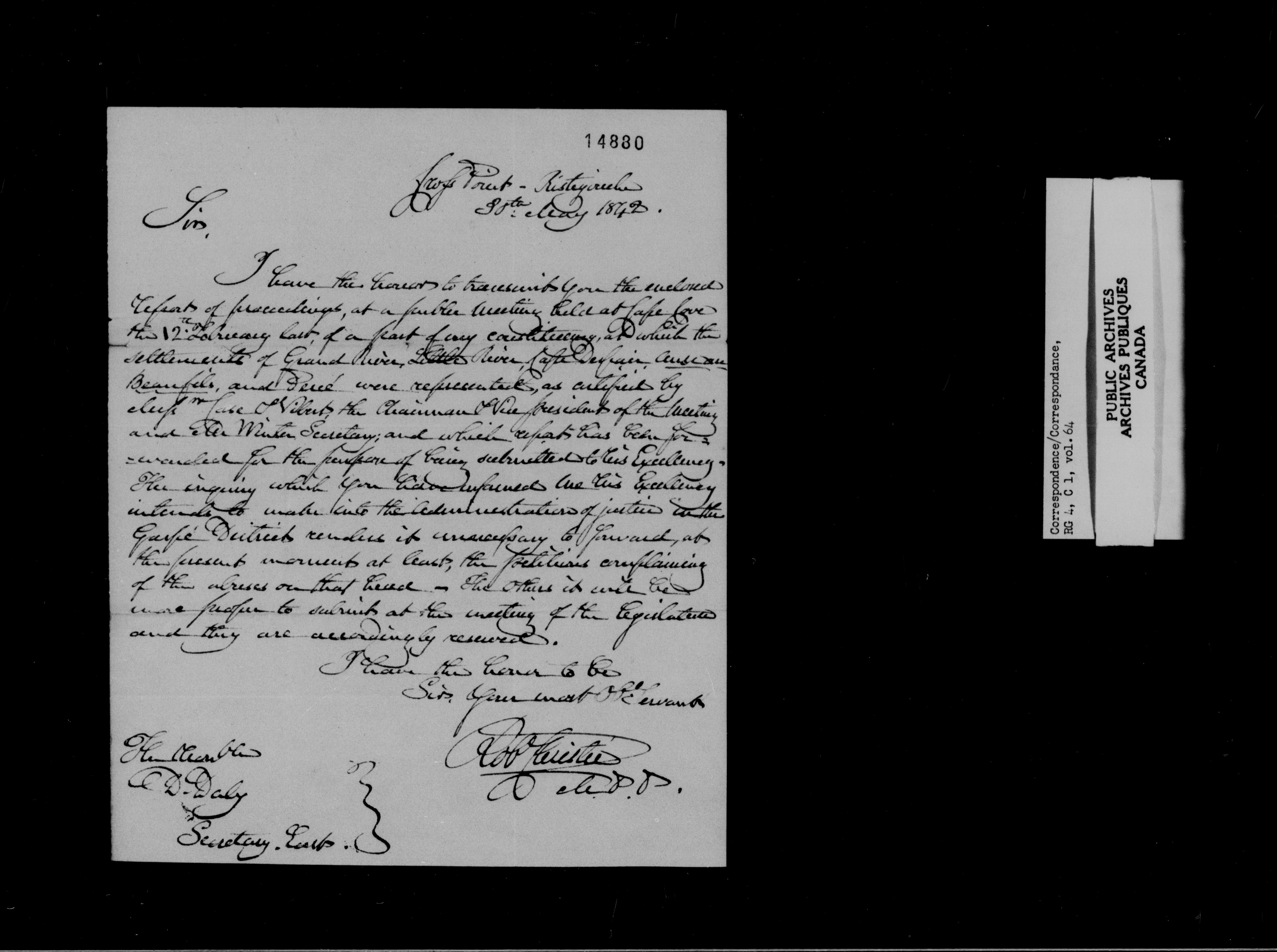 Provincial Secretary, Canada East : Numbered Correspondence Files, 1839-1867 - 10893