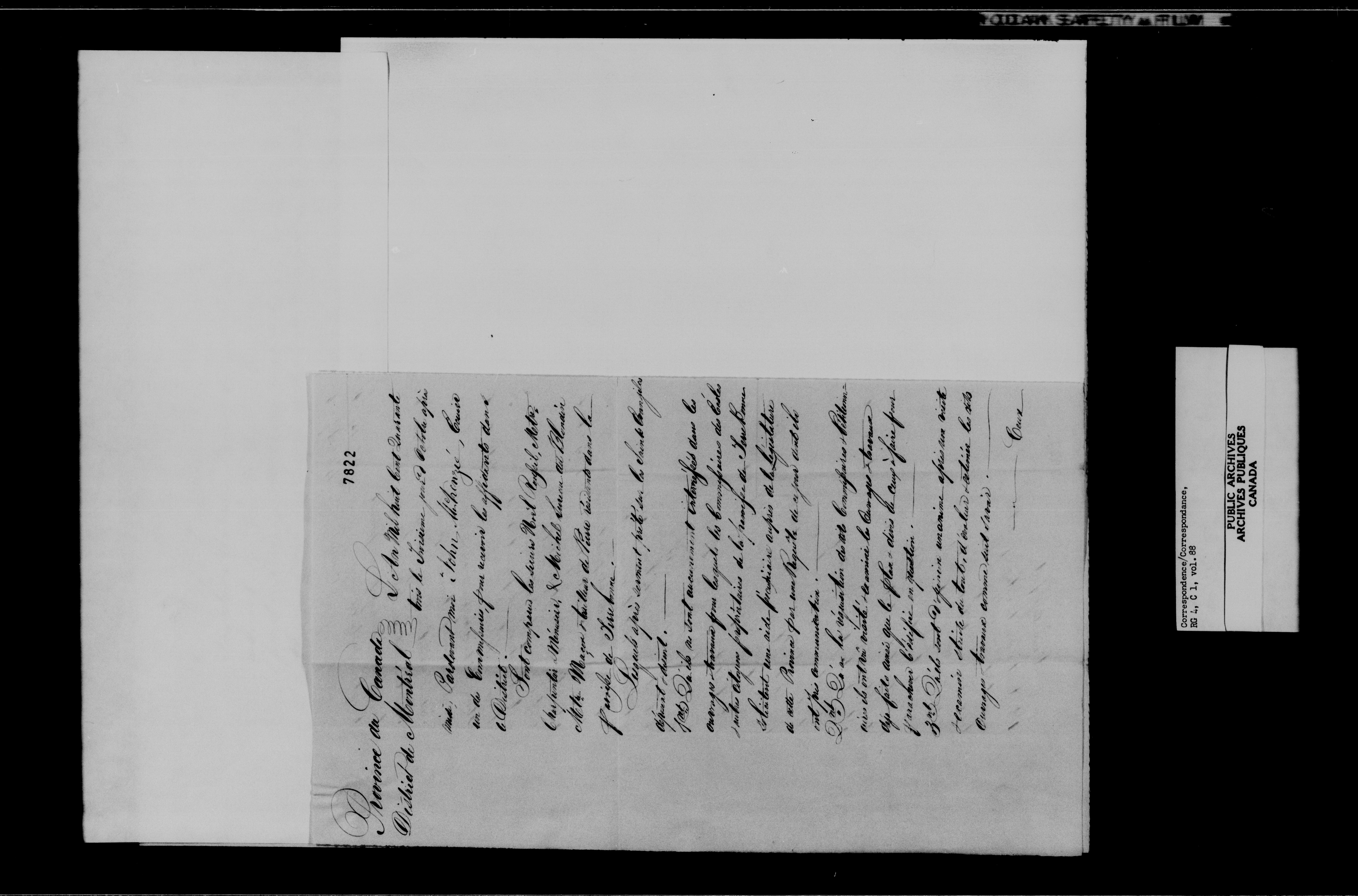Canada East : Provincial Secretary numbered correspondence files, 1839-1867 : C-10906