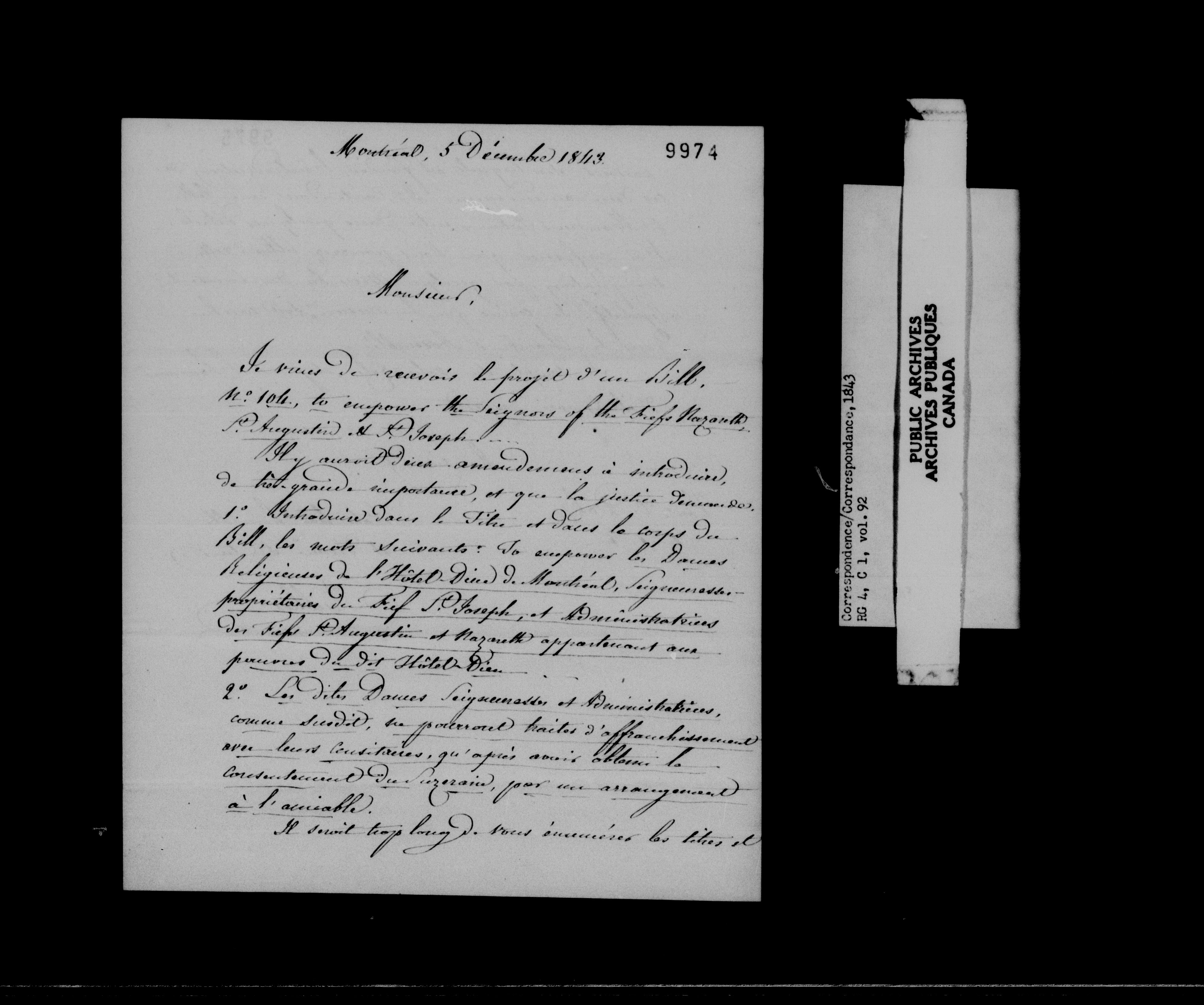 Provincial Secretary, Canada East : Numbered Correspondence Files, 1839-1867 - 10908