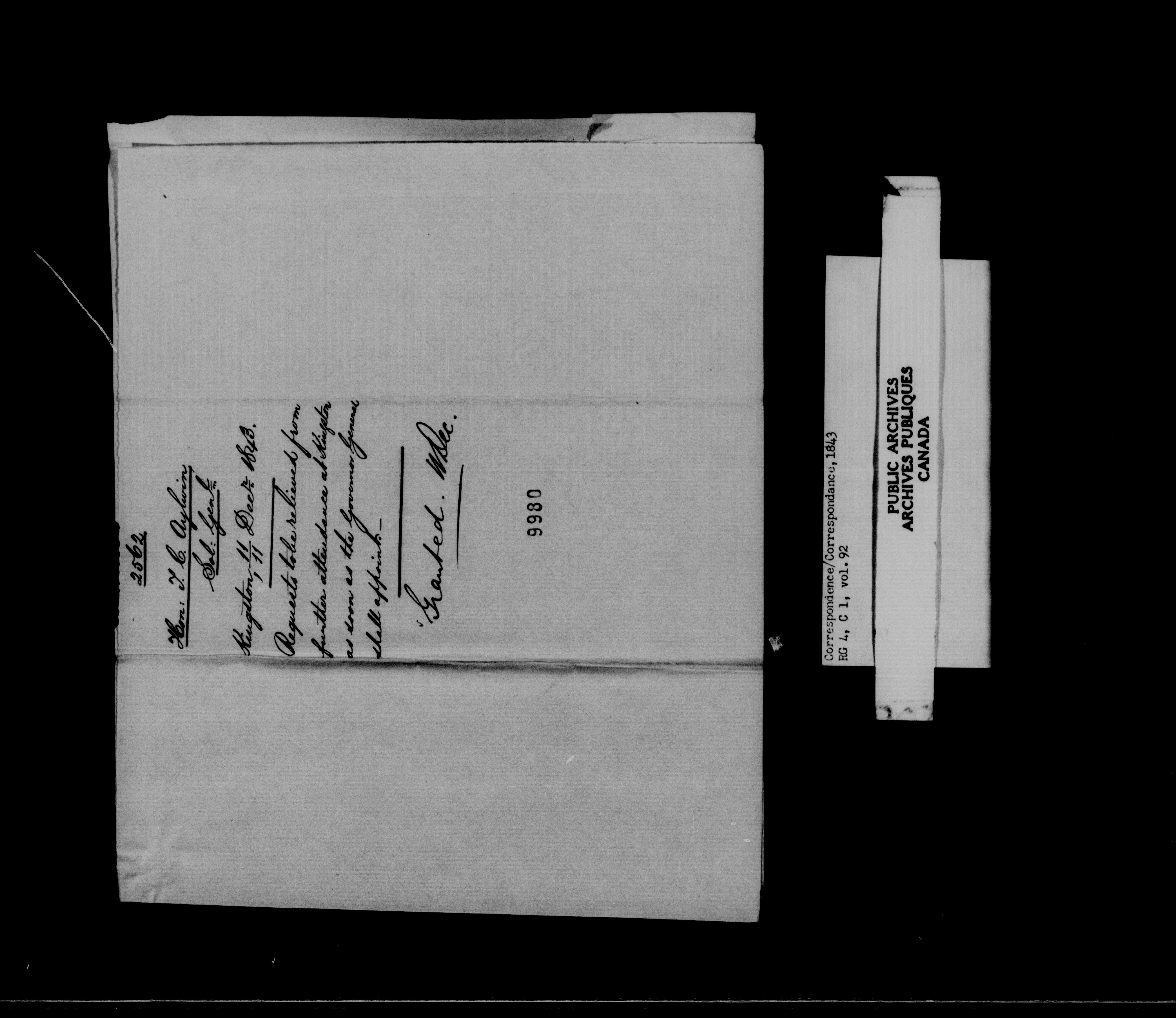 Provincial Secretary, Canada East : Numbered Correspondence Files, 1839-1867 - 10908