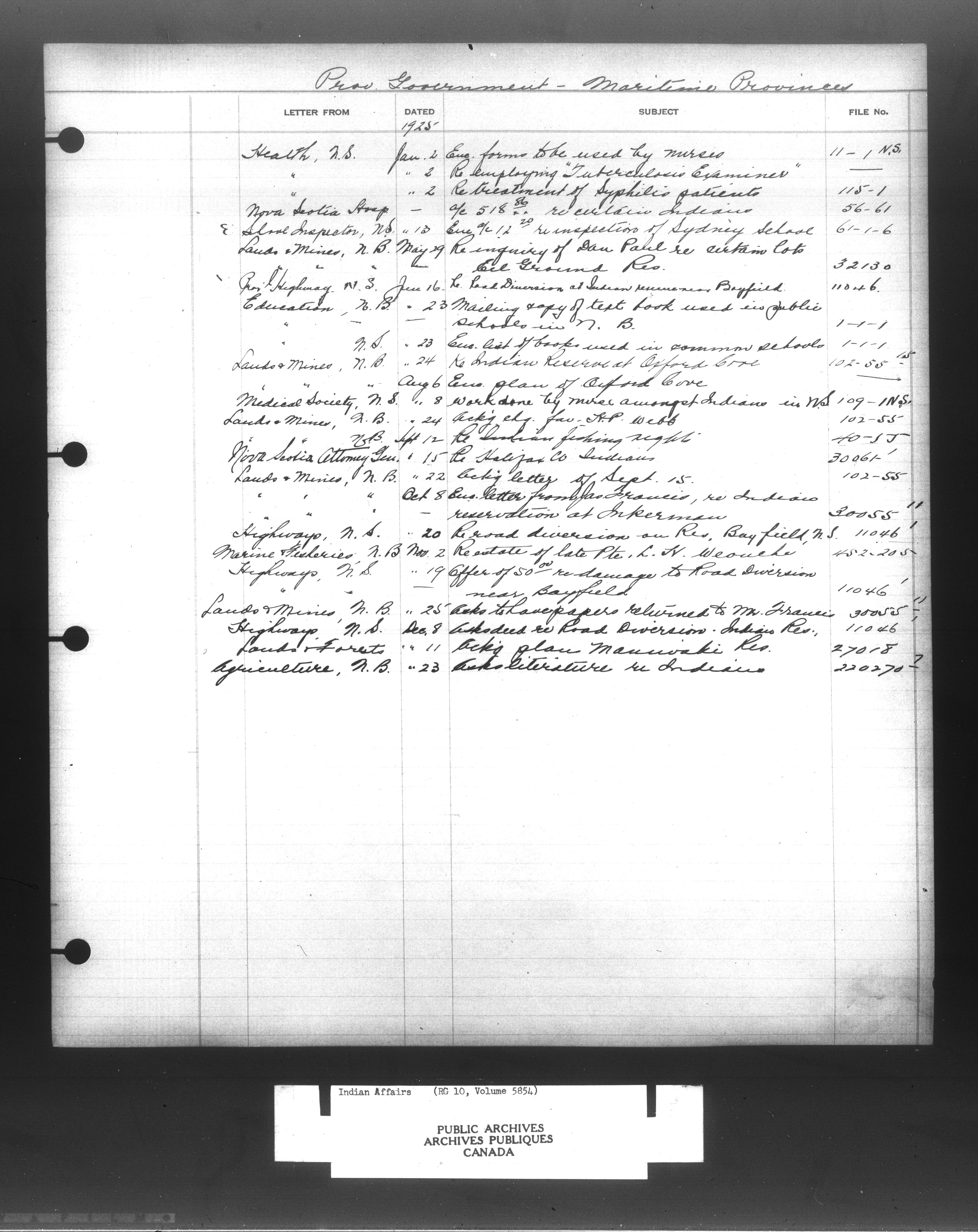 Department of Indian Affairs : Indexed Registers for Eastern Canada - 10910