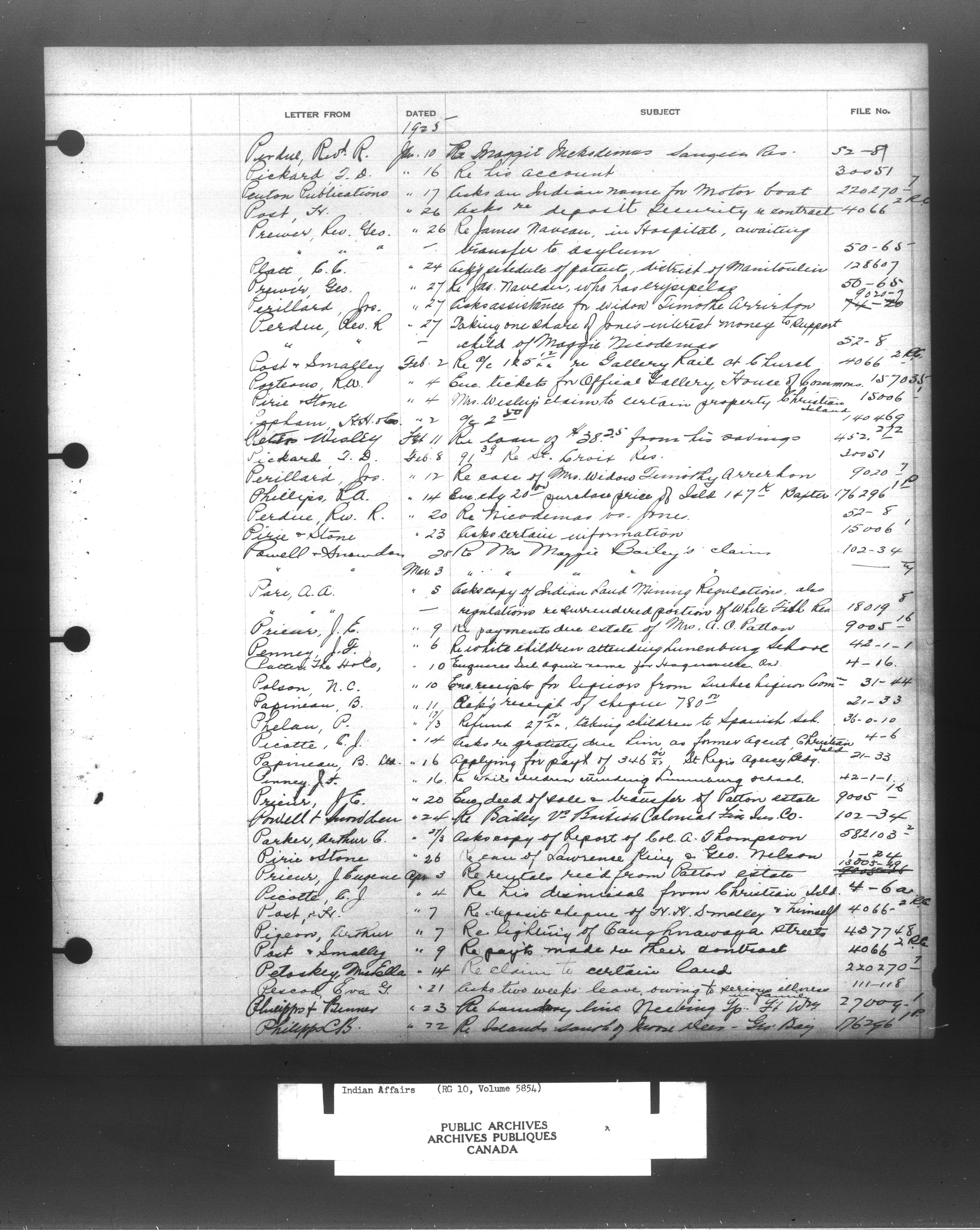 Department of Indian Affairs : Indexed Registers for Eastern Canada - 10910