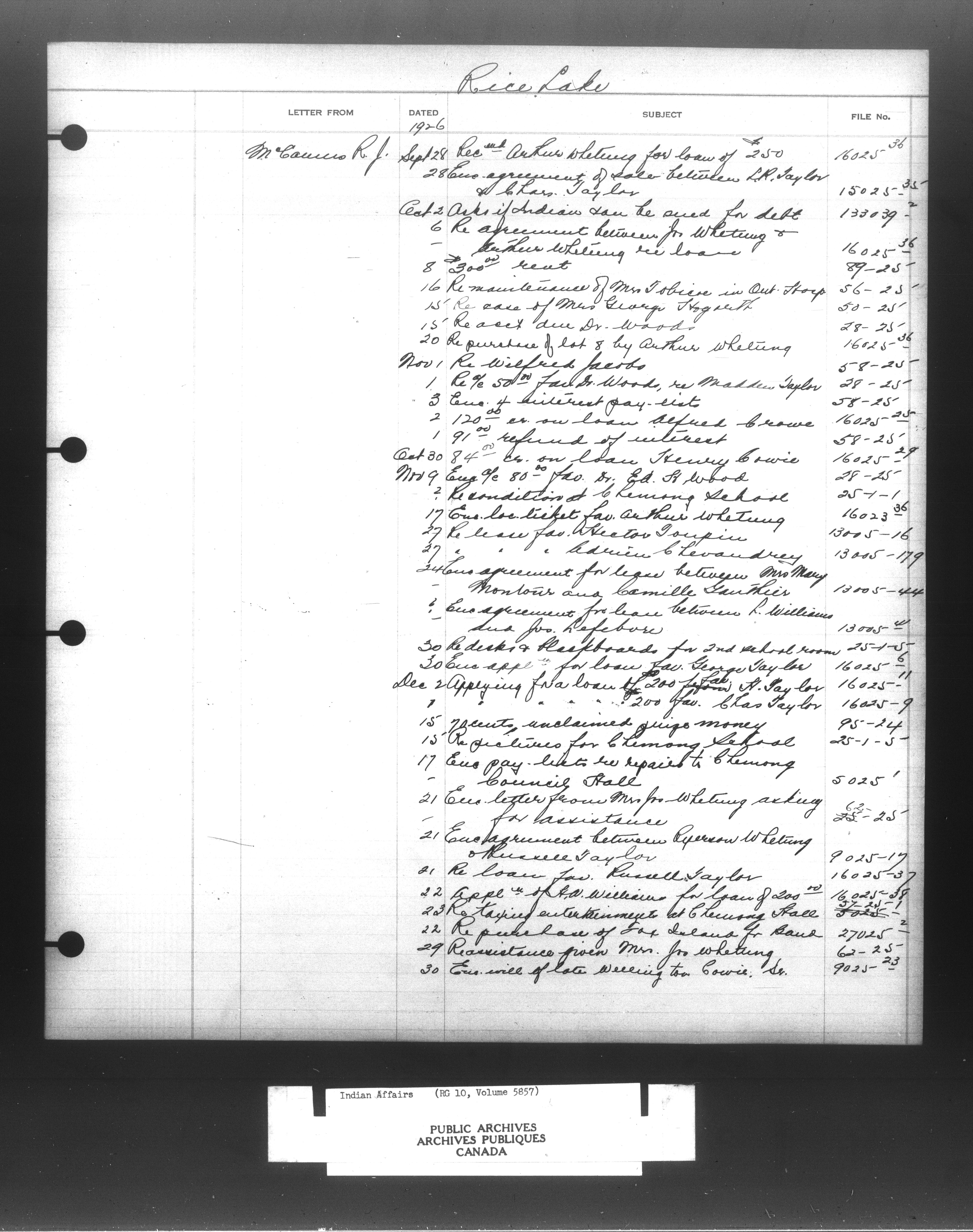 Department of Indian Affairs : Indexed Registers for Eastern Canada - 10910