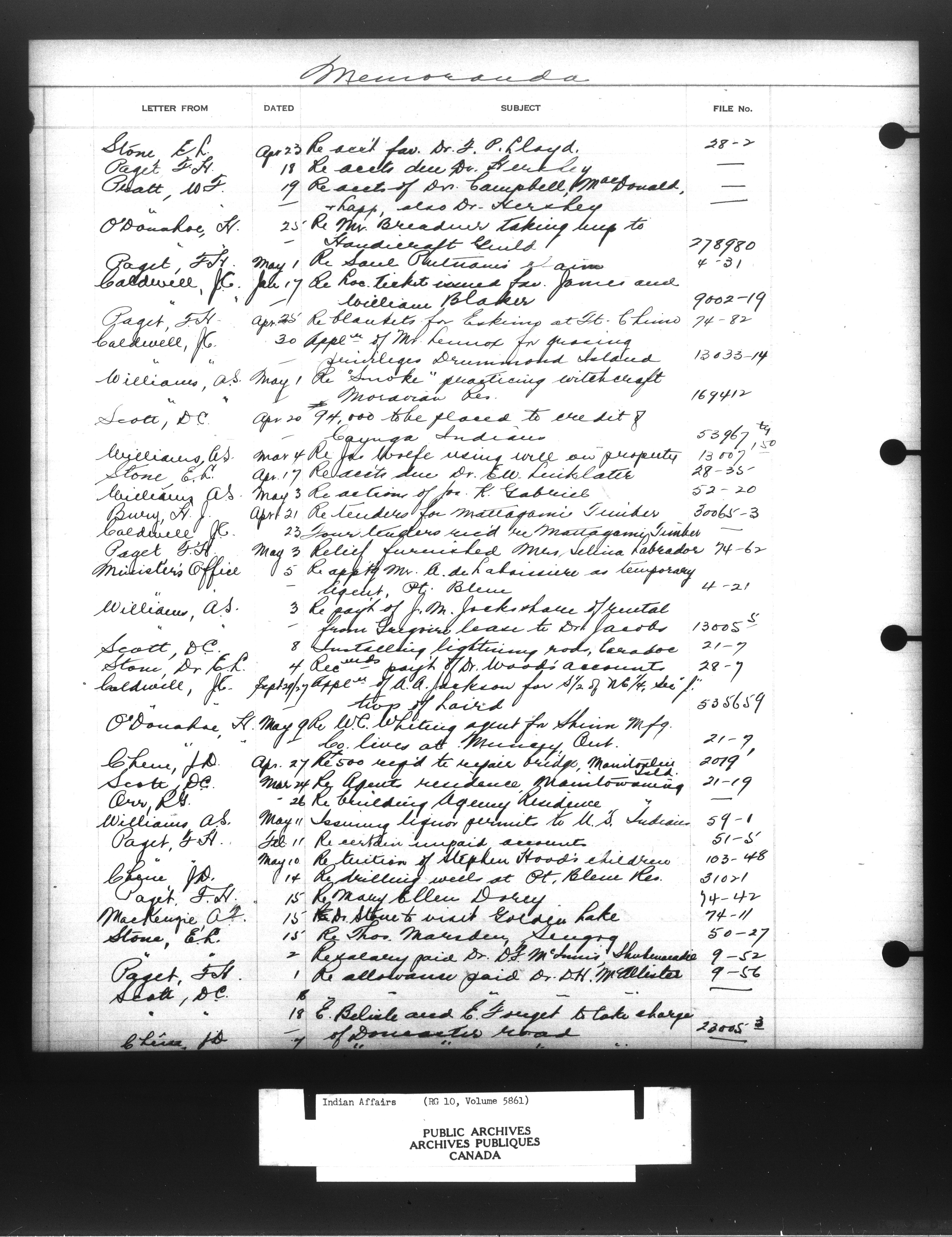 Department of Indian Affairs : Indexed Registers for Eastern Canada - 10912