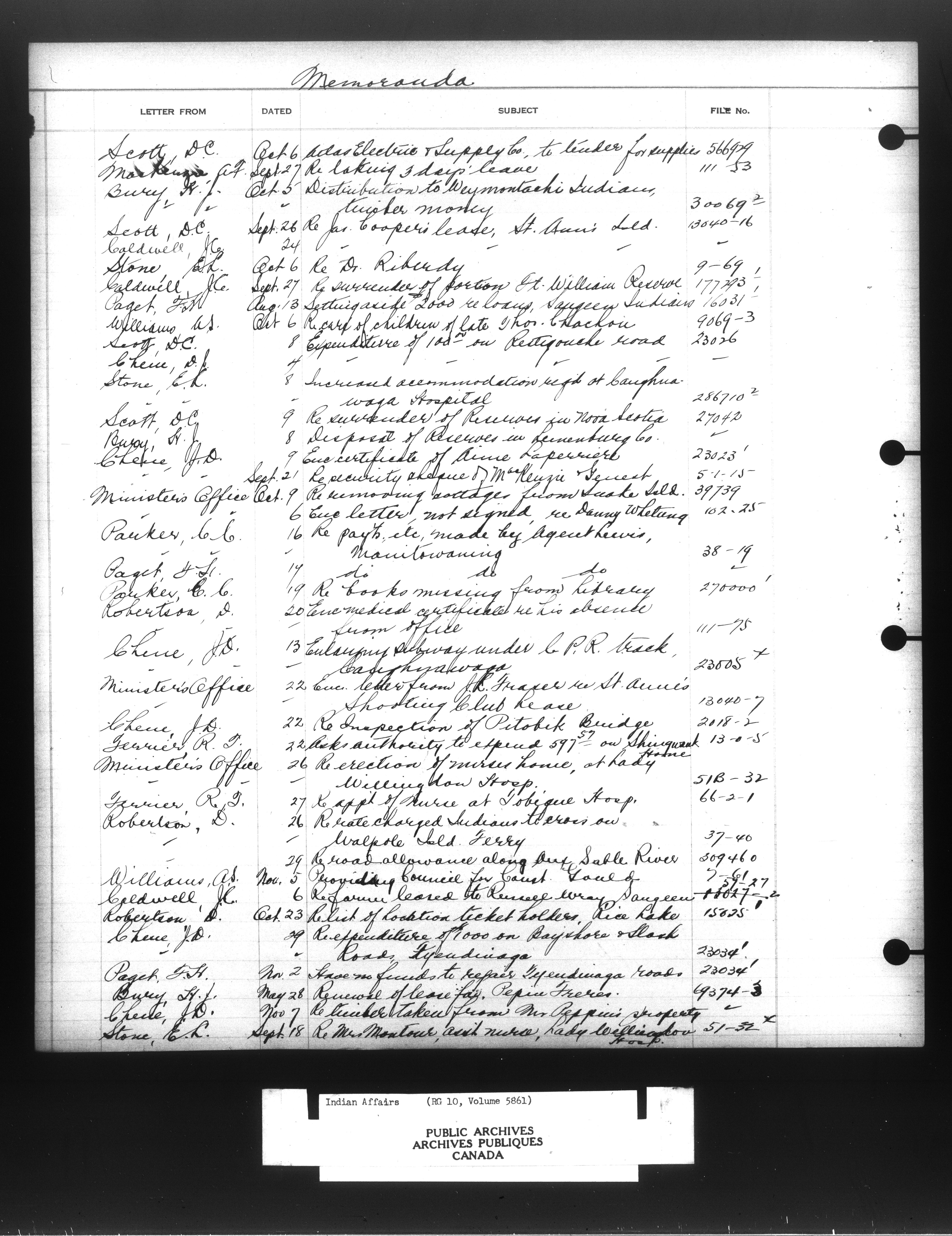 Department of Indian Affairs : Indexed Registers for Eastern Canada - 10912