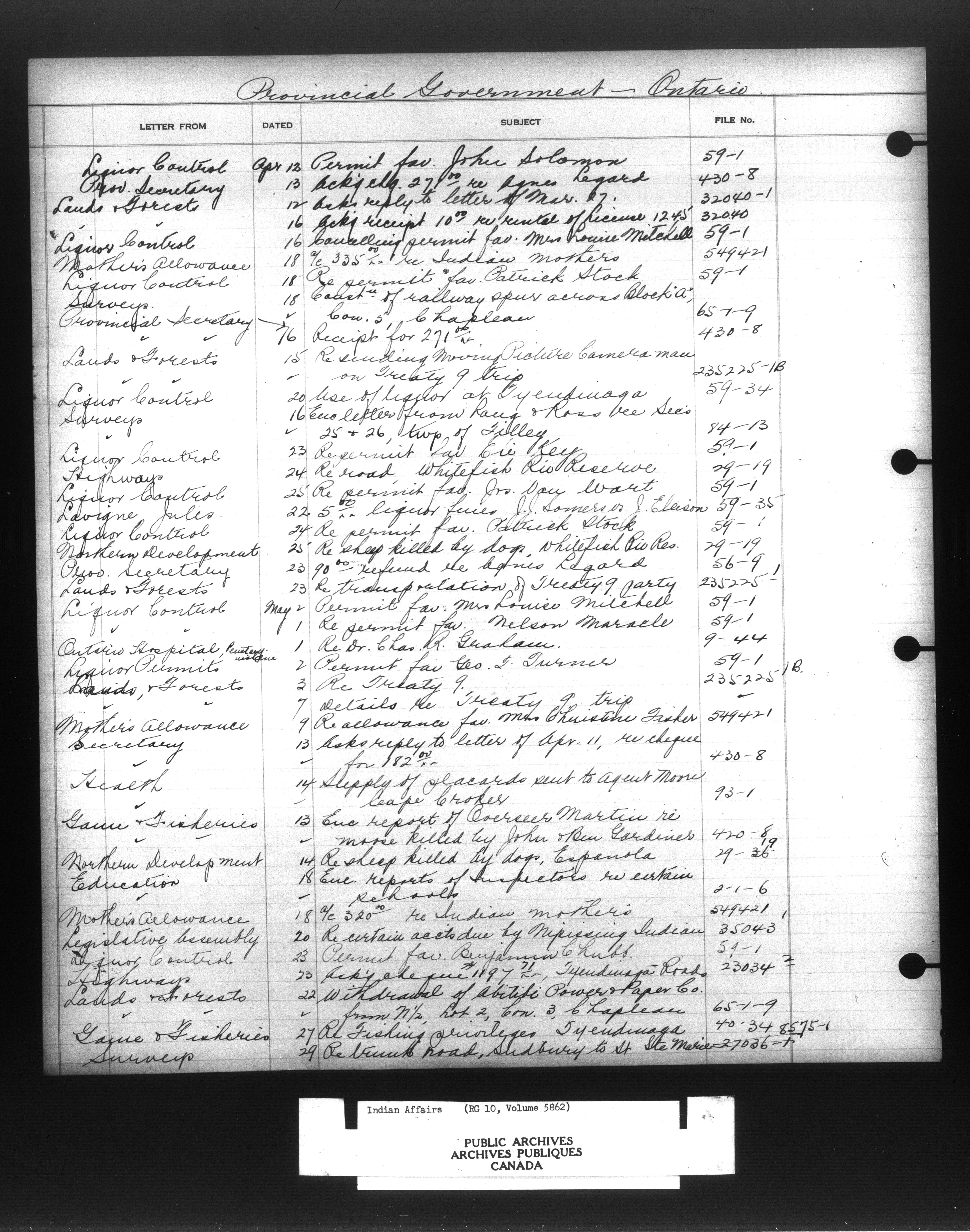 Department of Indian Affairs : Indexed Registers for Eastern Canada - 10912