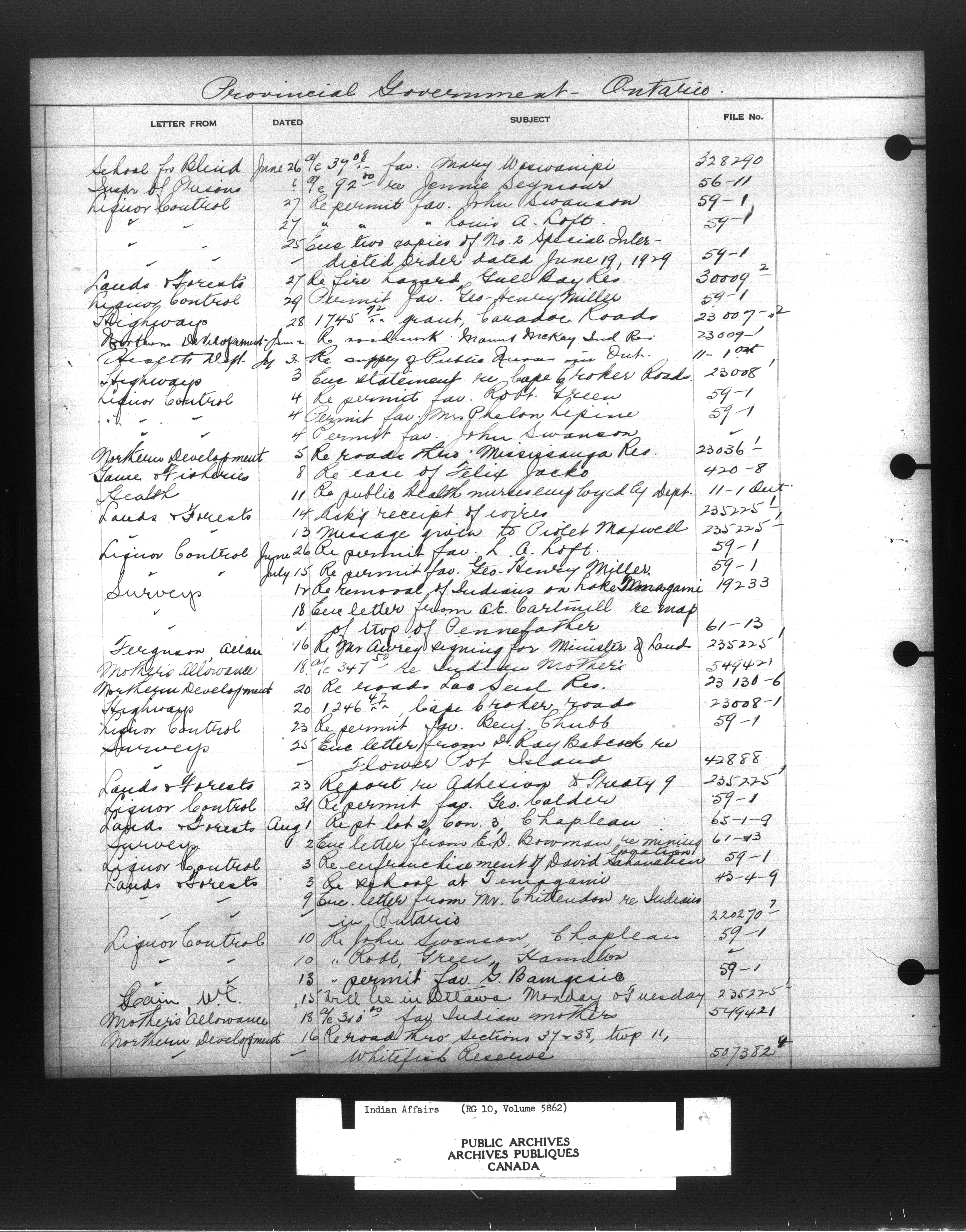 Department of Indian Affairs : Indexed Registers for Eastern Canada - 10912