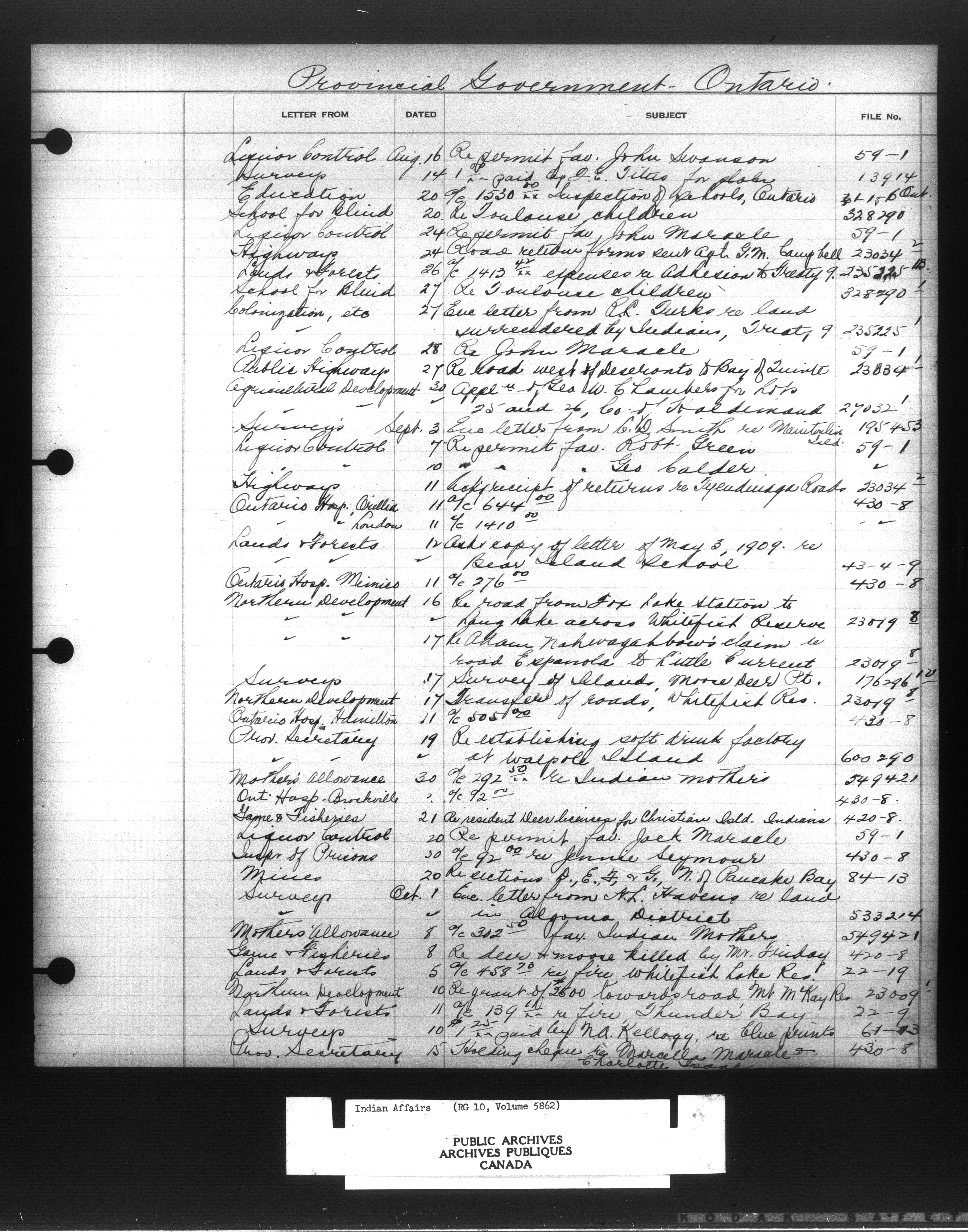 Department of Indian Affairs : Indexed Registers for Eastern Canada - 10912