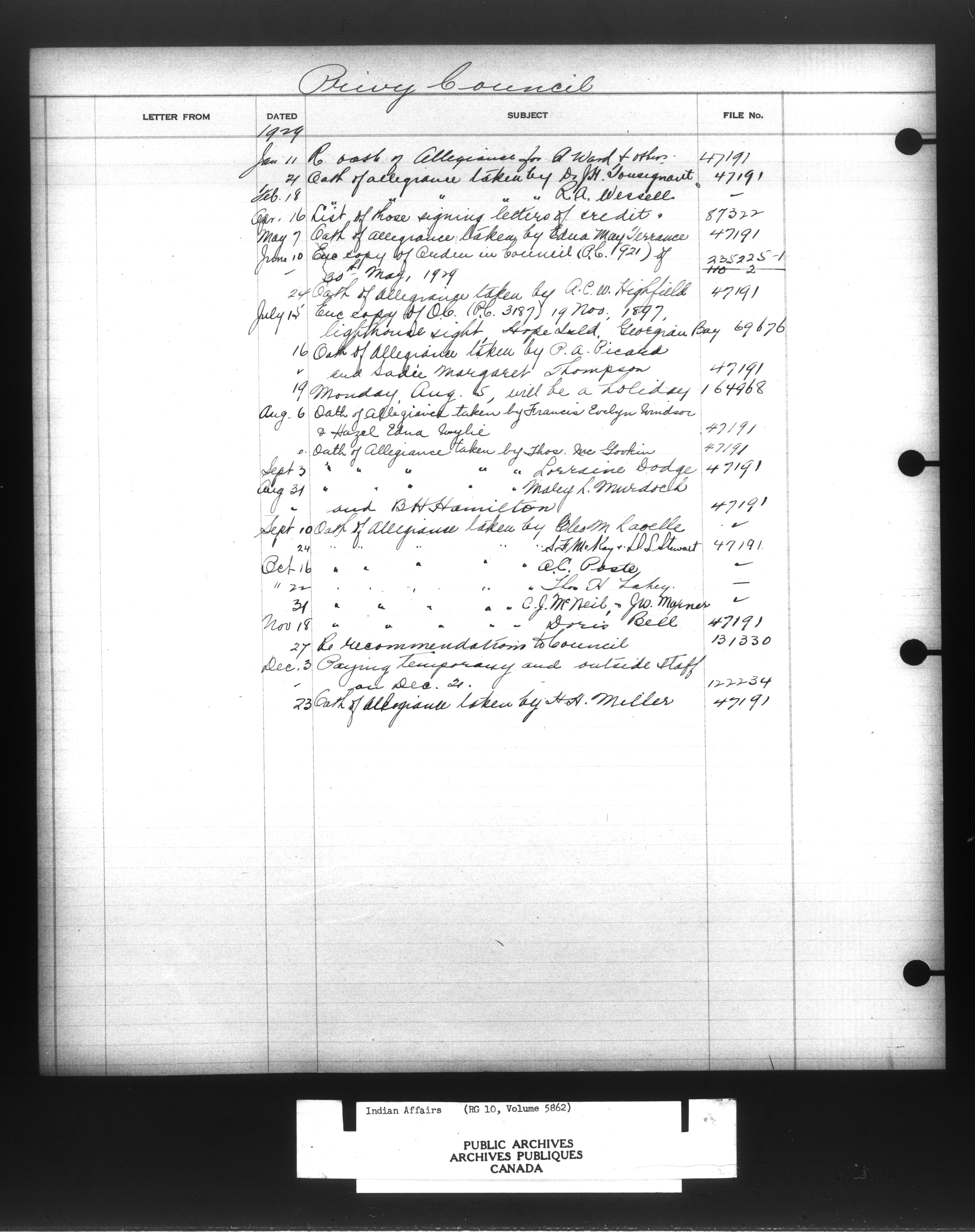 Department of Indian Affairs : Indexed Registers for Eastern Canada - 10912