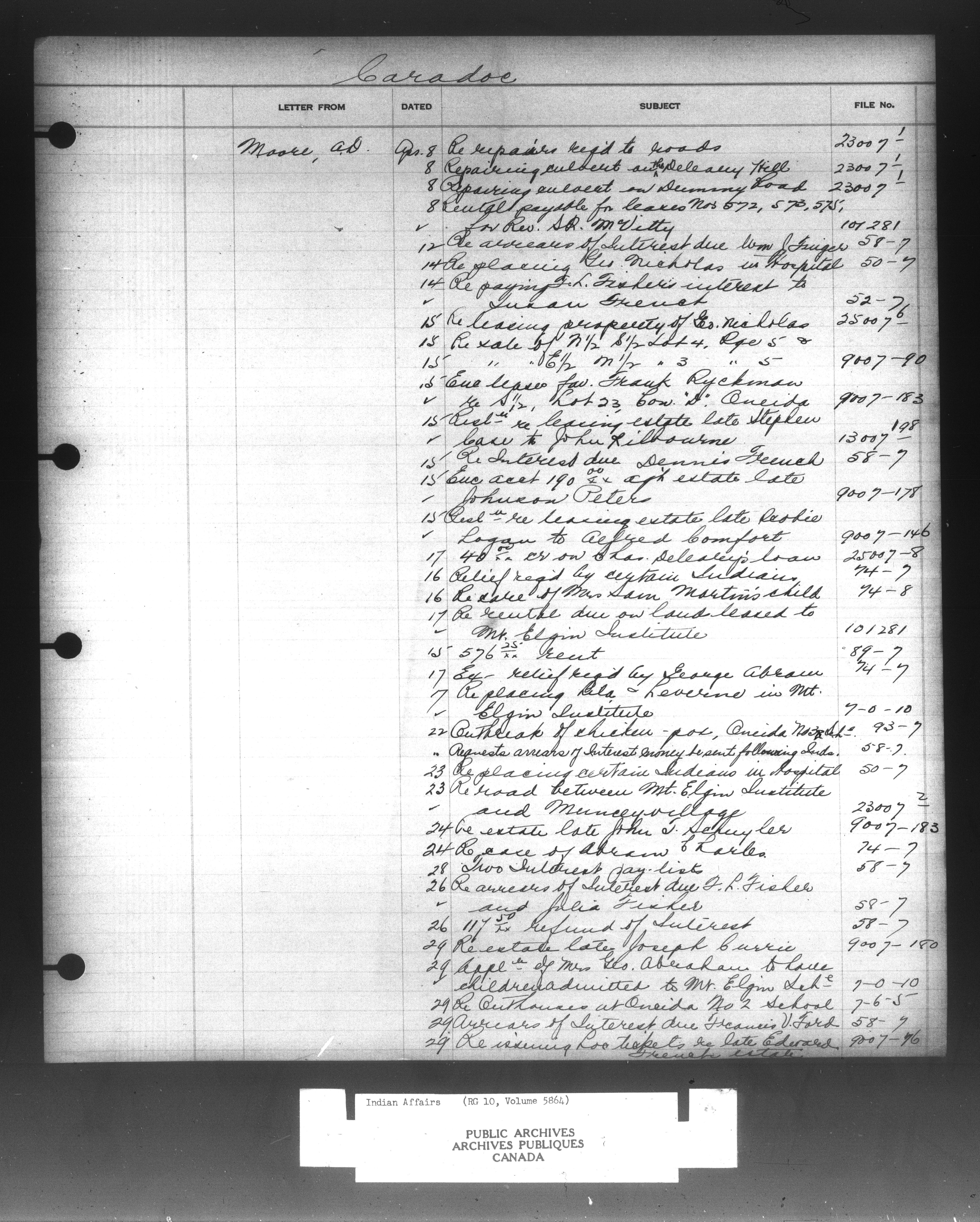 Department of Indian Affairs : Indexed Registers for Eastern Canada - 10913