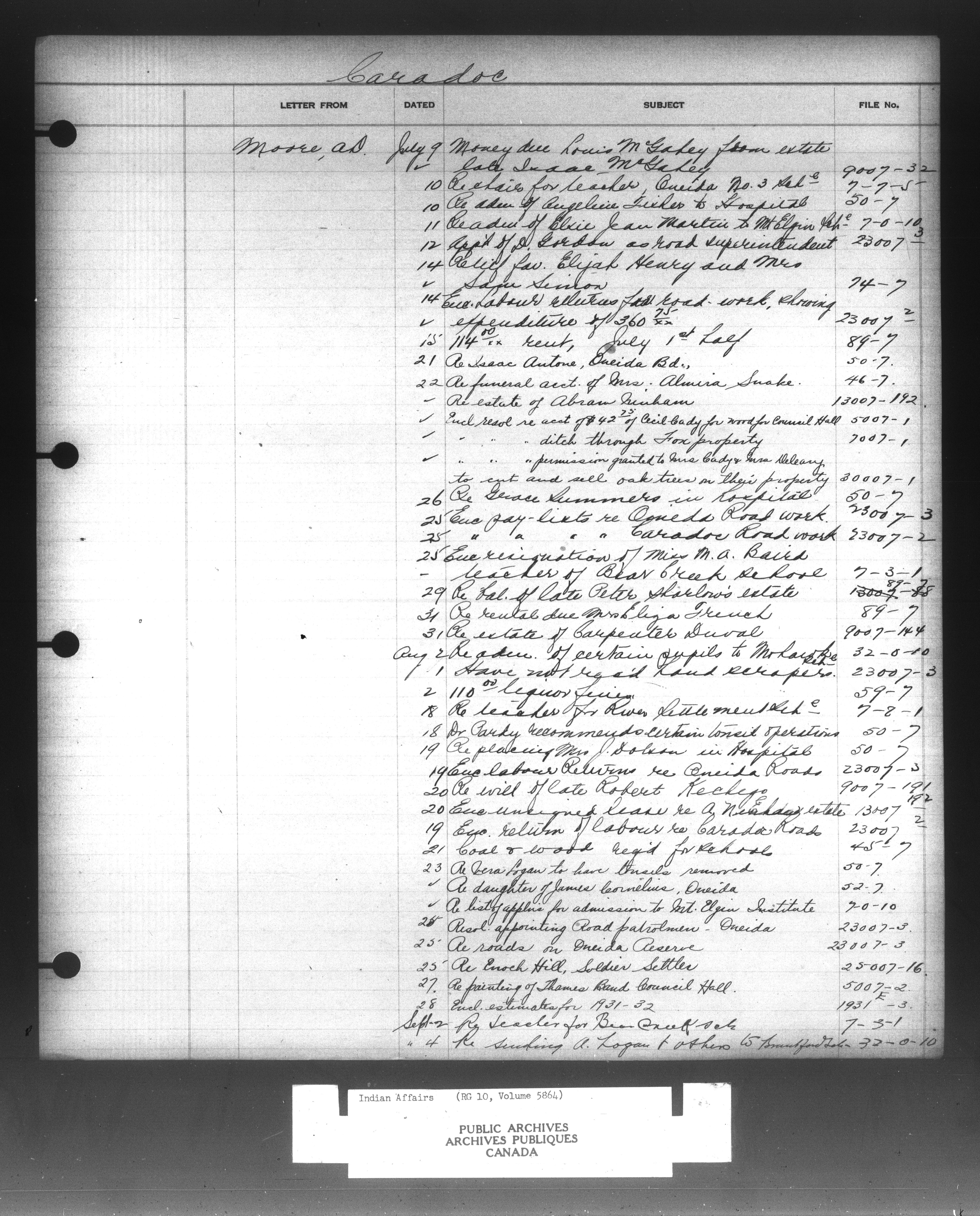 Department of Indian Affairs : Indexed Registers for Eastern Canada - 10913