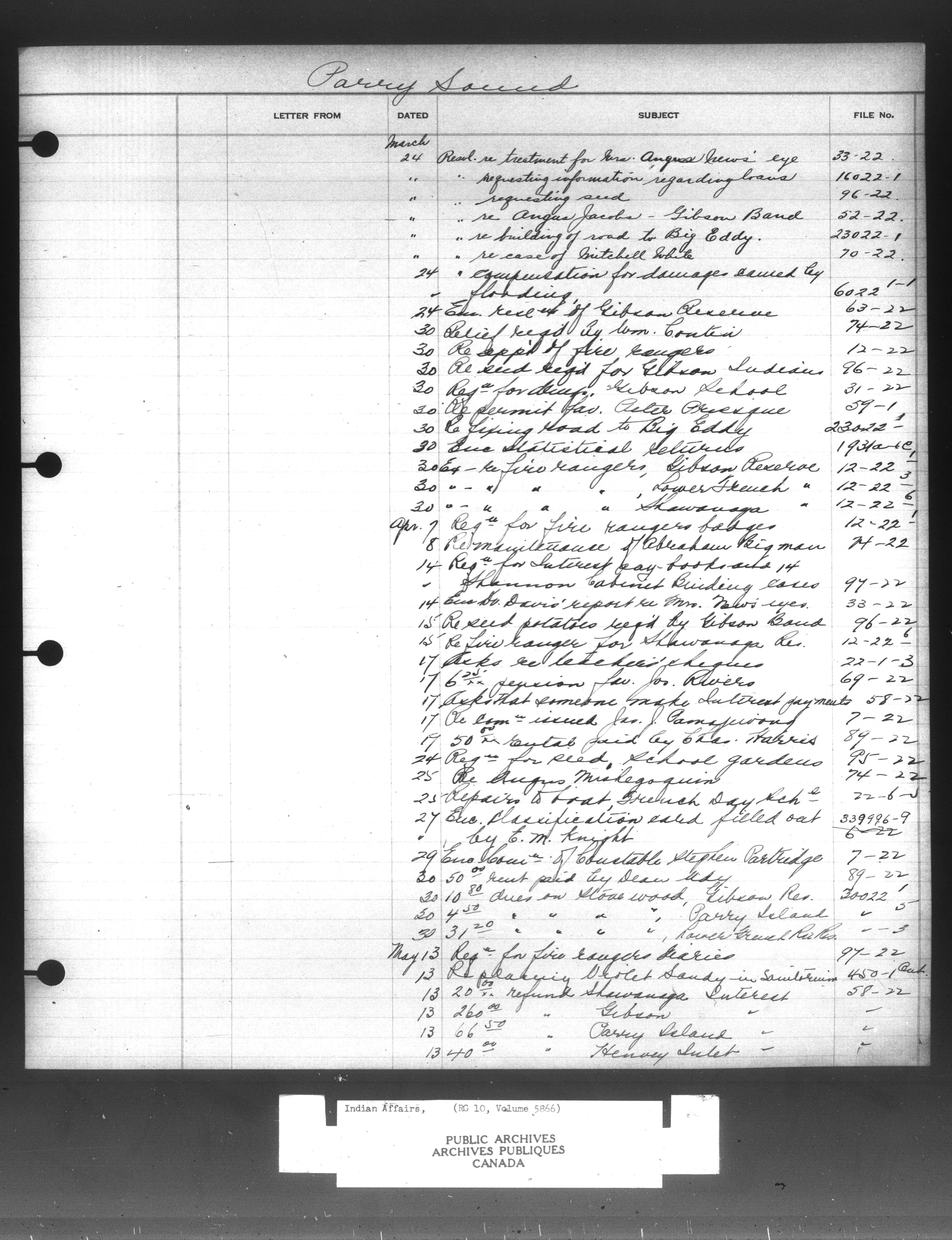 Department of Indian Affairs : Indexed Registers for Eastern Canada - 10915