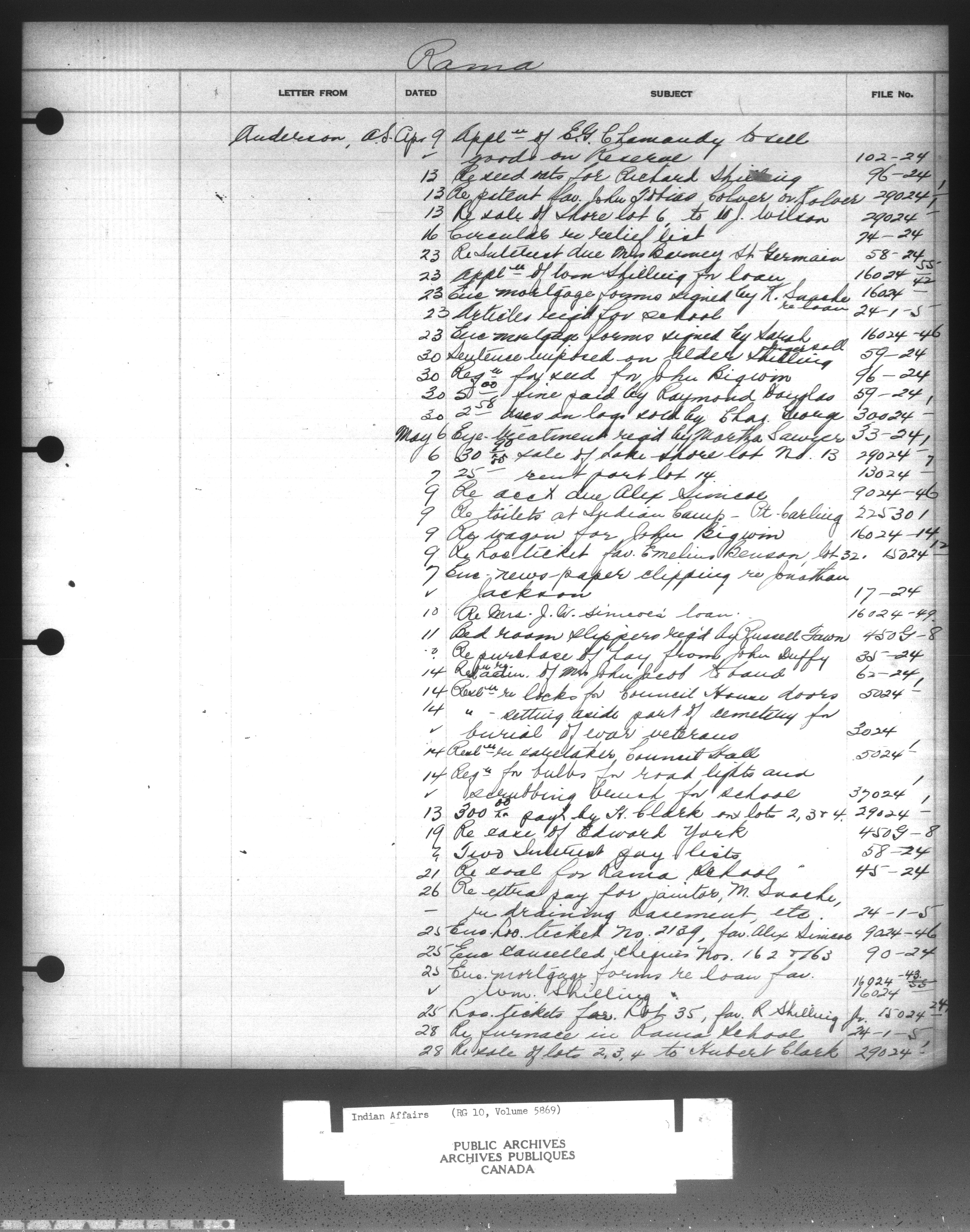 Department of Indian Affairs, Headquarters central registry system :registers, indices and indexed registers : C-10915
