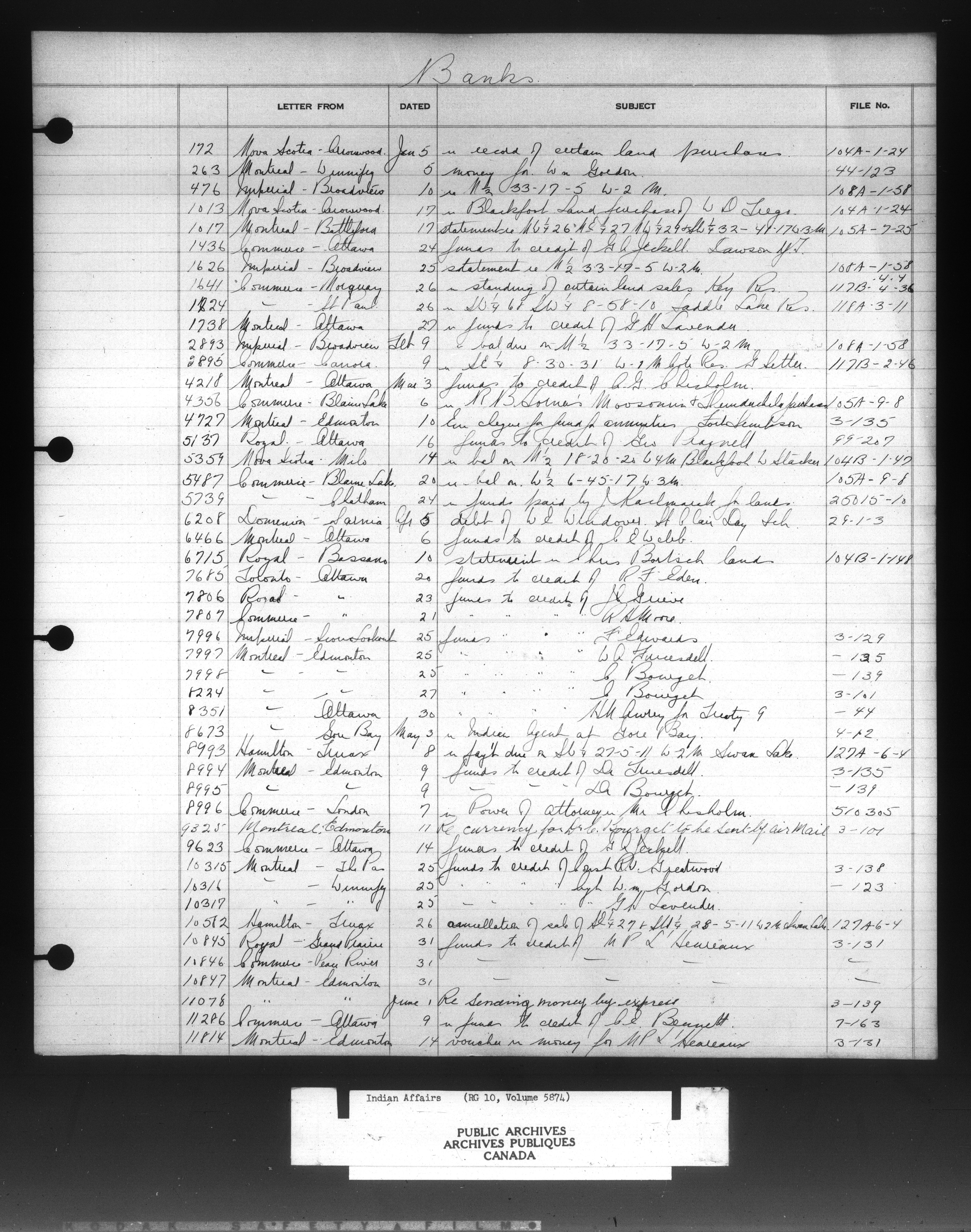 Department of Indian Affairs : Indexed Registers for Eastern Canada - 10917