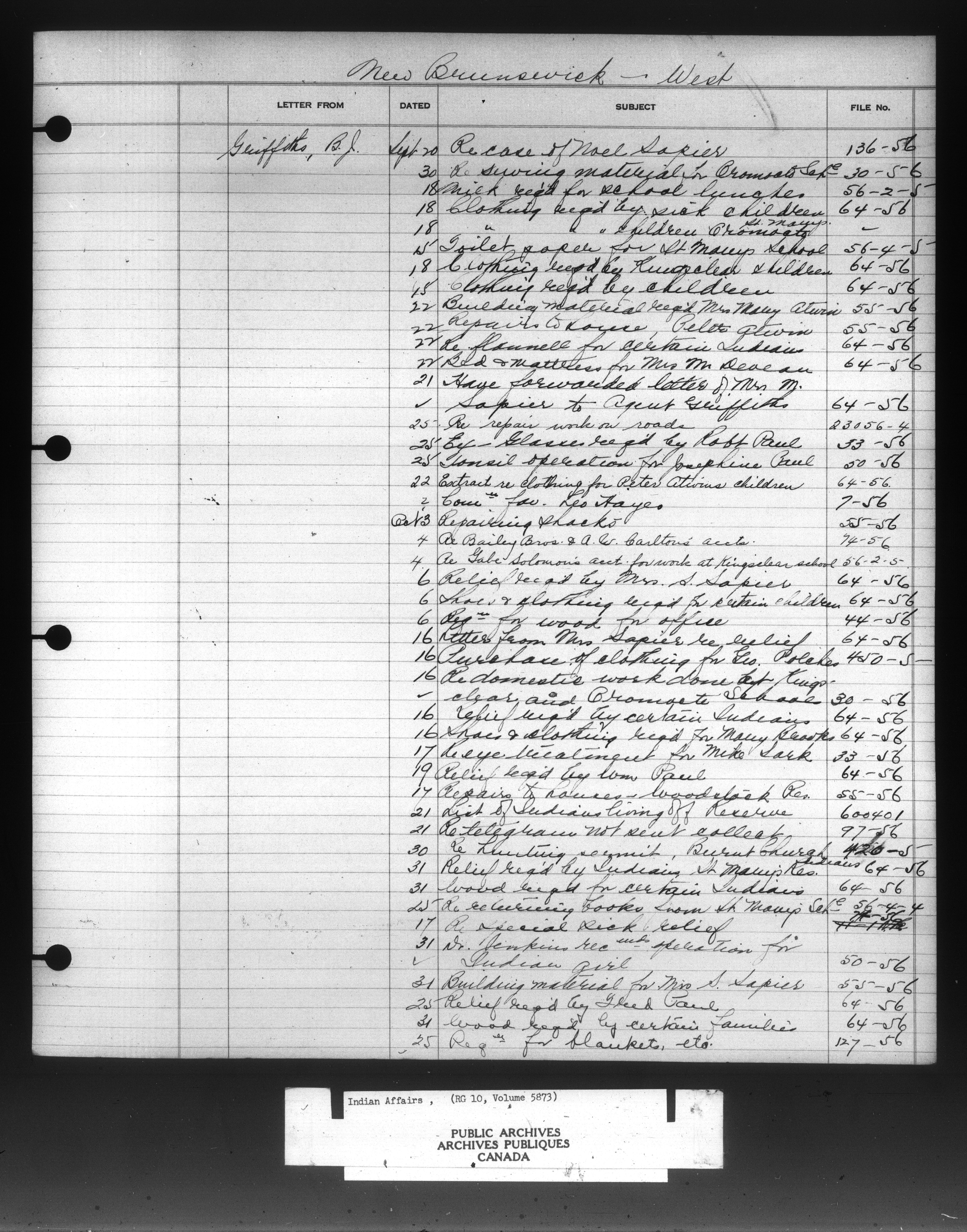 Department of Indian Affairs : Indexed Registers for Eastern Canada - 10917