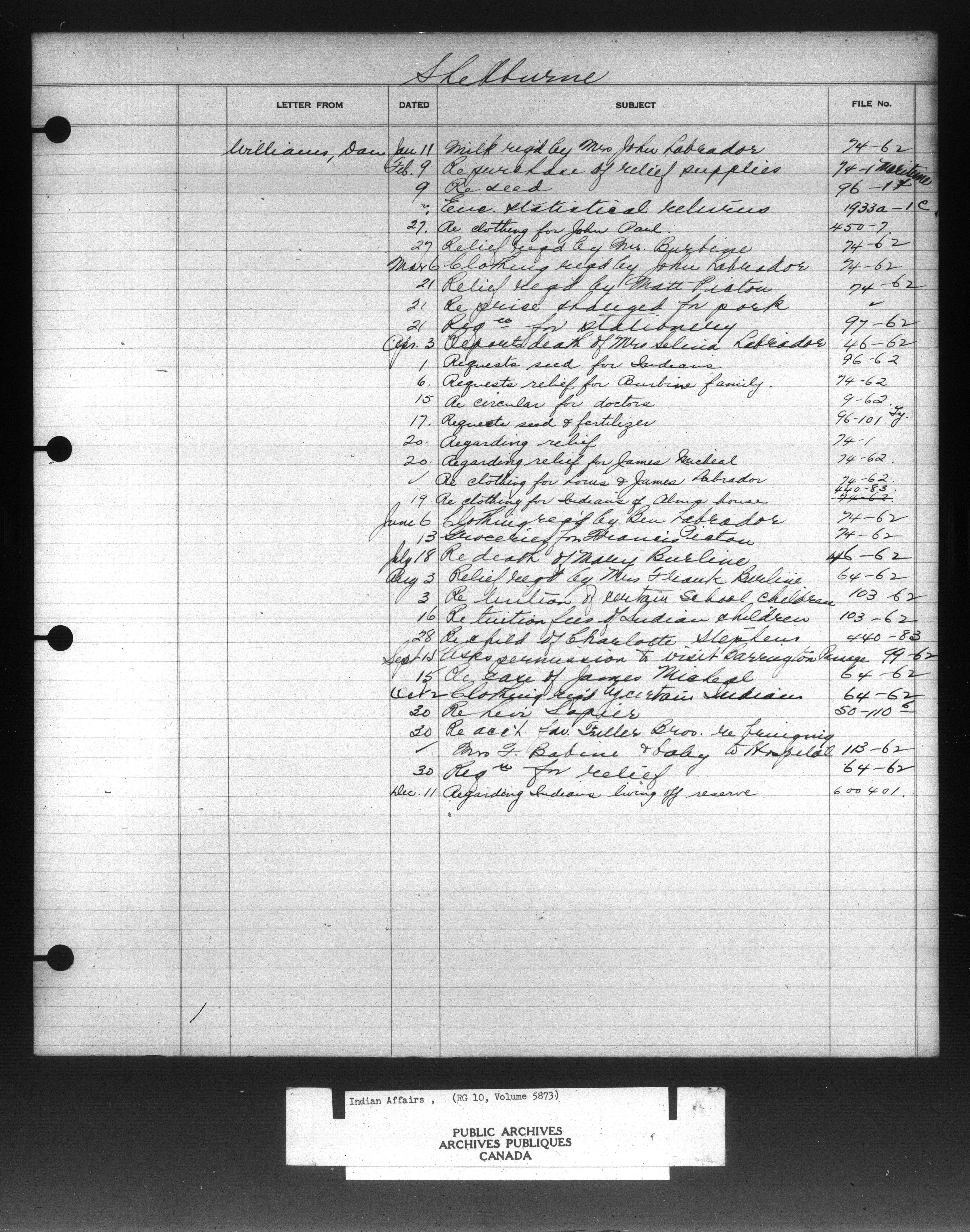 Department of Indian Affairs : Indexed Registers for Eastern Canada - 10917
