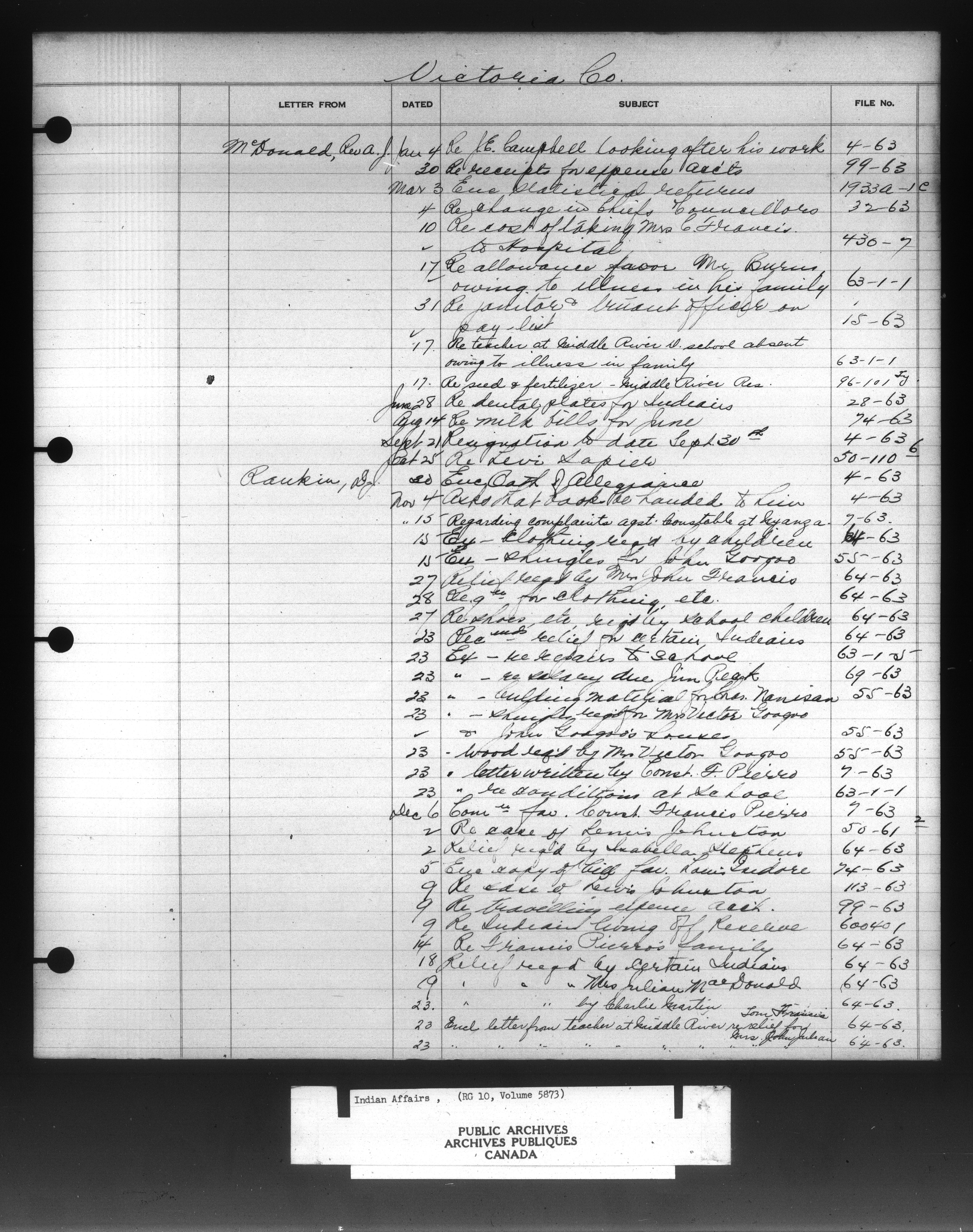 Department of Indian Affairs : Indexed Registers for Eastern Canada - 10917