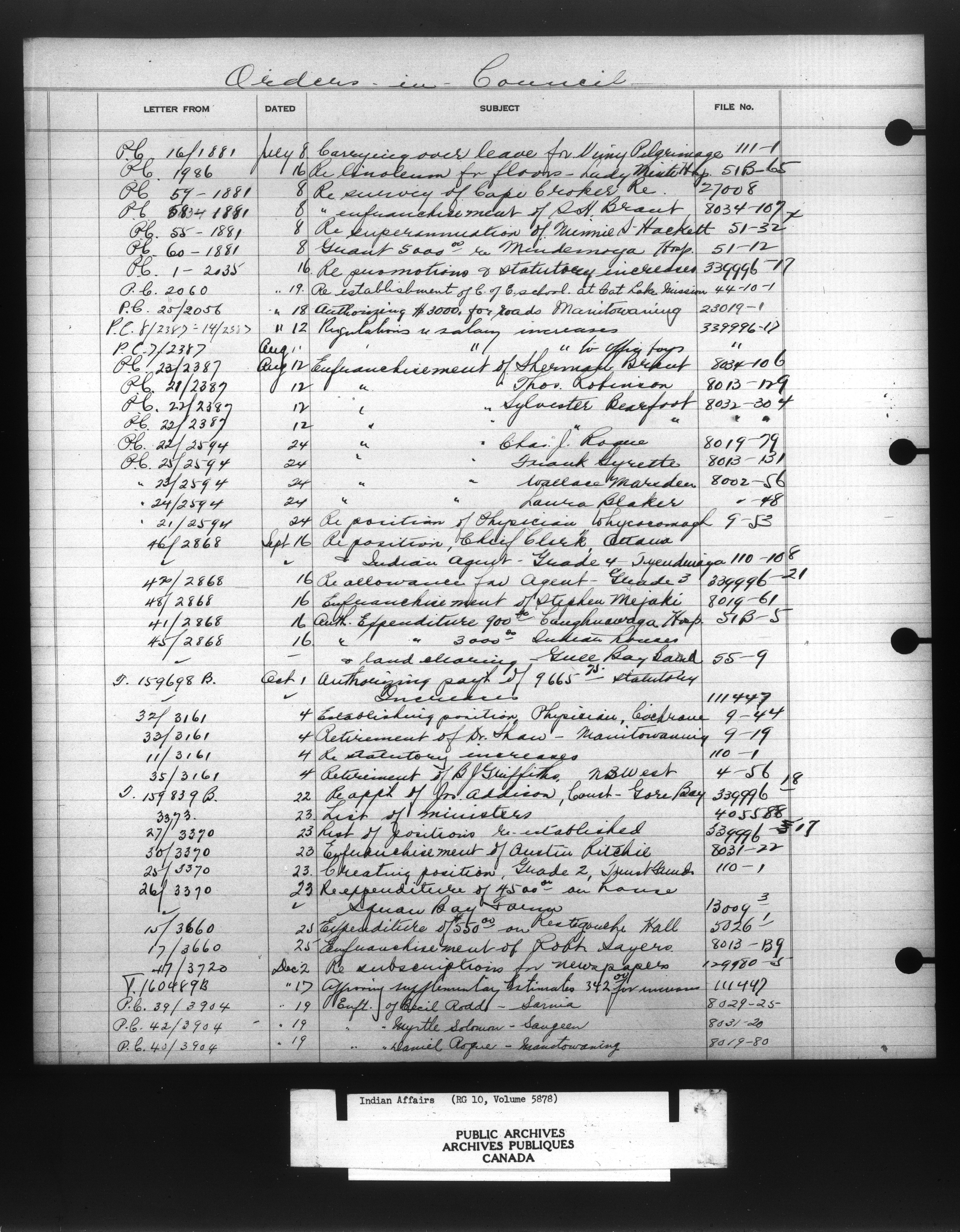 Department of Indian Affairs, Headquarters central registry system :registers, indices and indexed registers : C-10920
