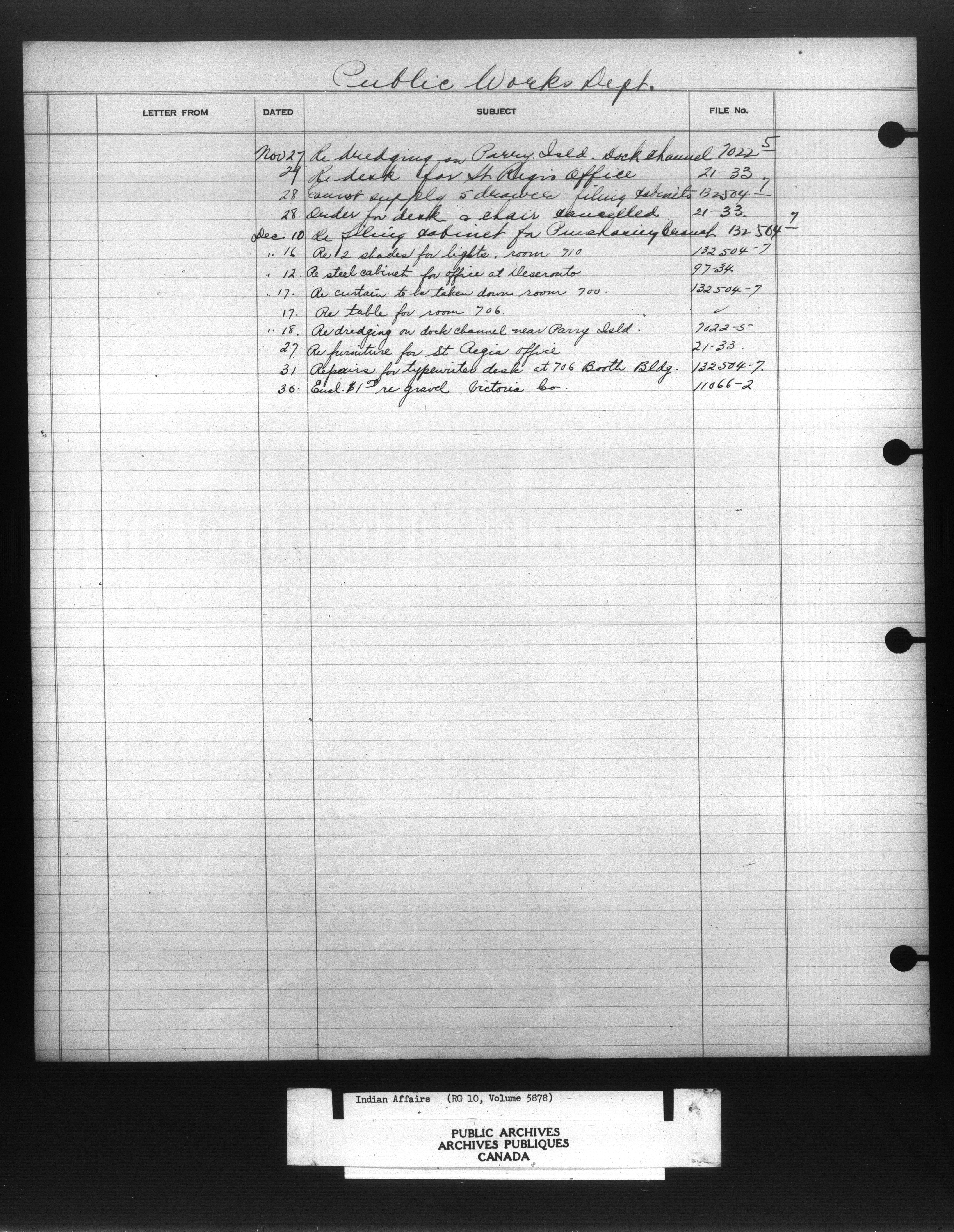 Department of Indian Affairs : Indexed Registers for Eastern Canada - 10920