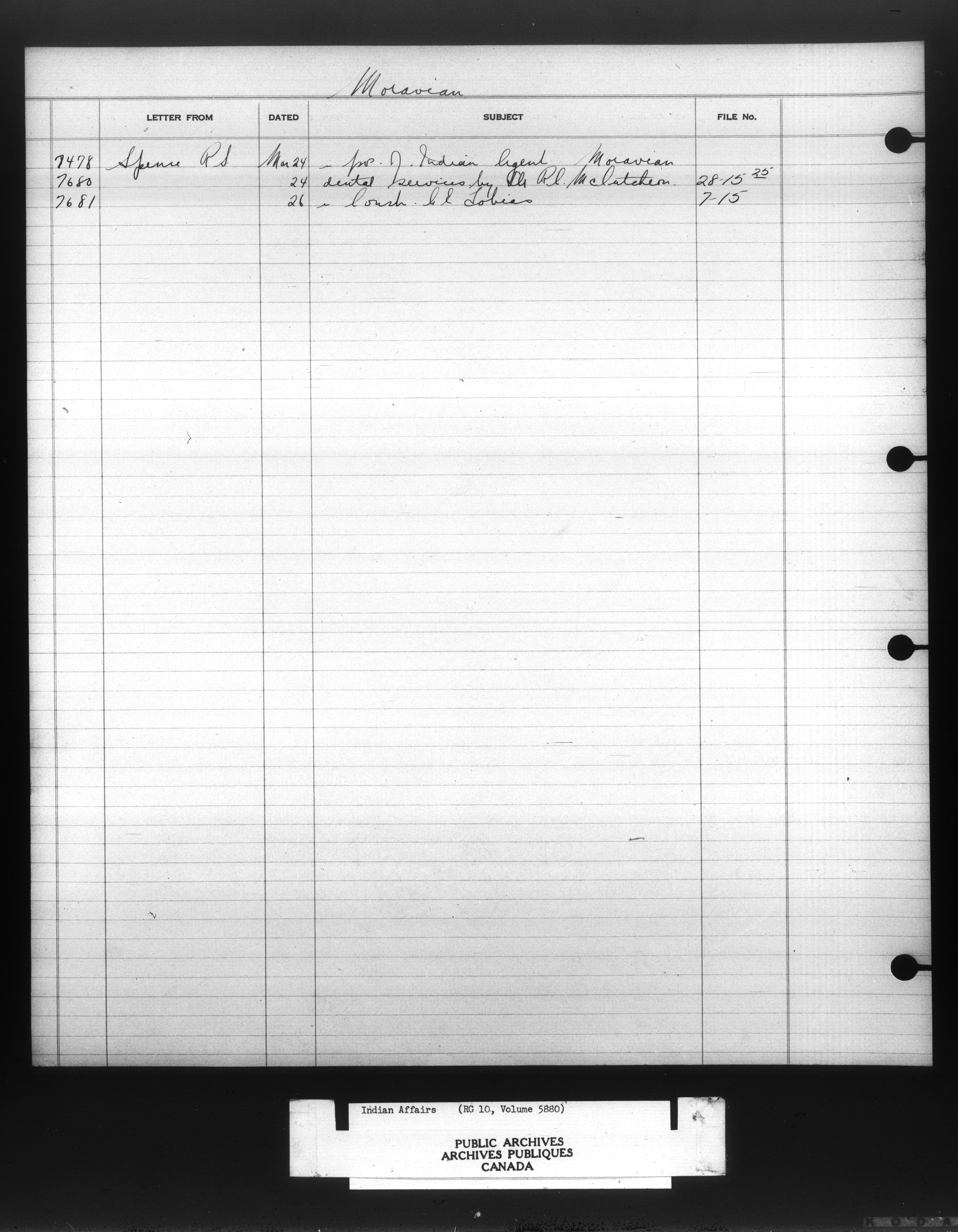 Department of Indian Affairs : Indexed Registers for Eastern Canada - 10920