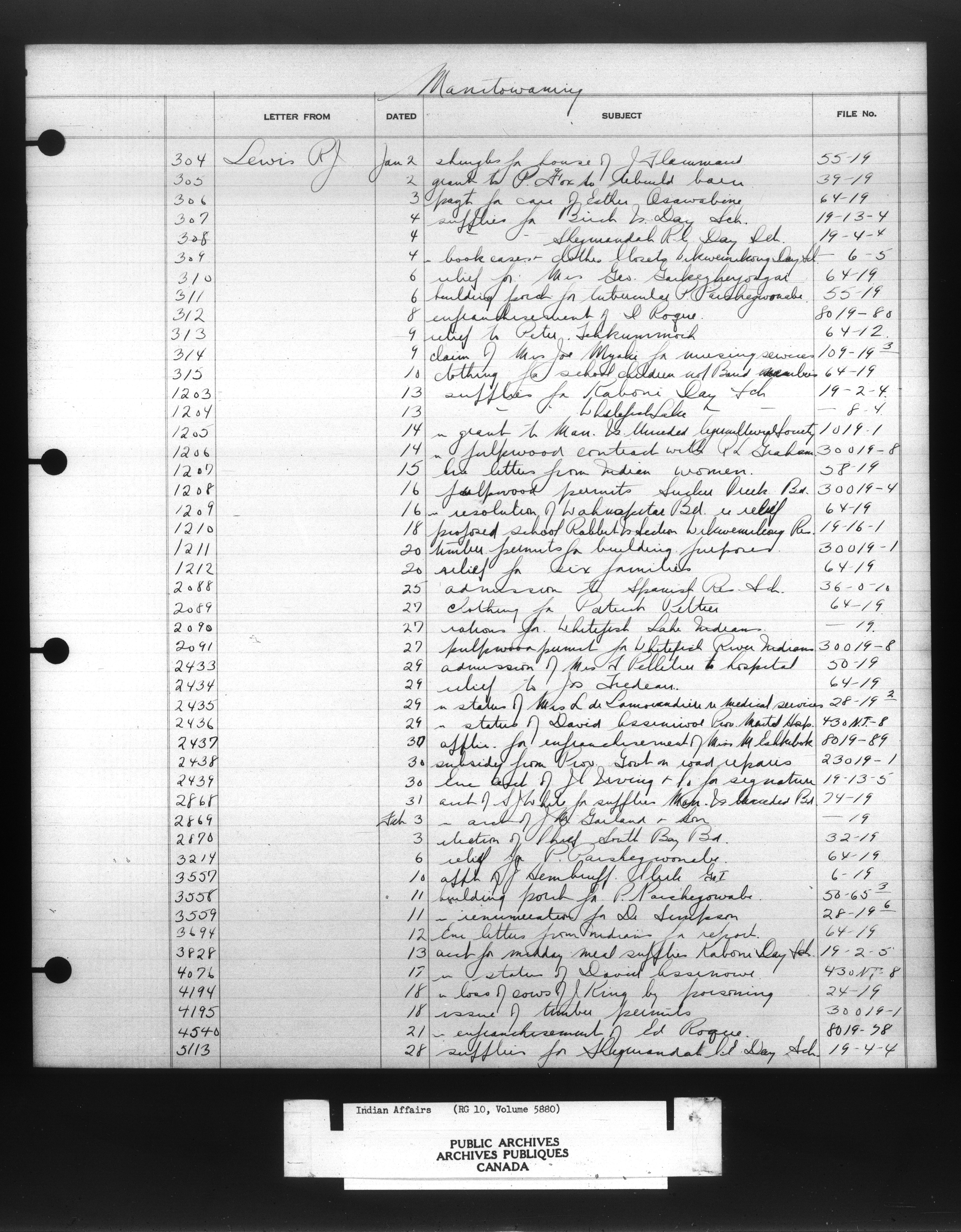Department of Indian Affairs, Headquarters central registry system :registers, indices and indexed registers : C-10920