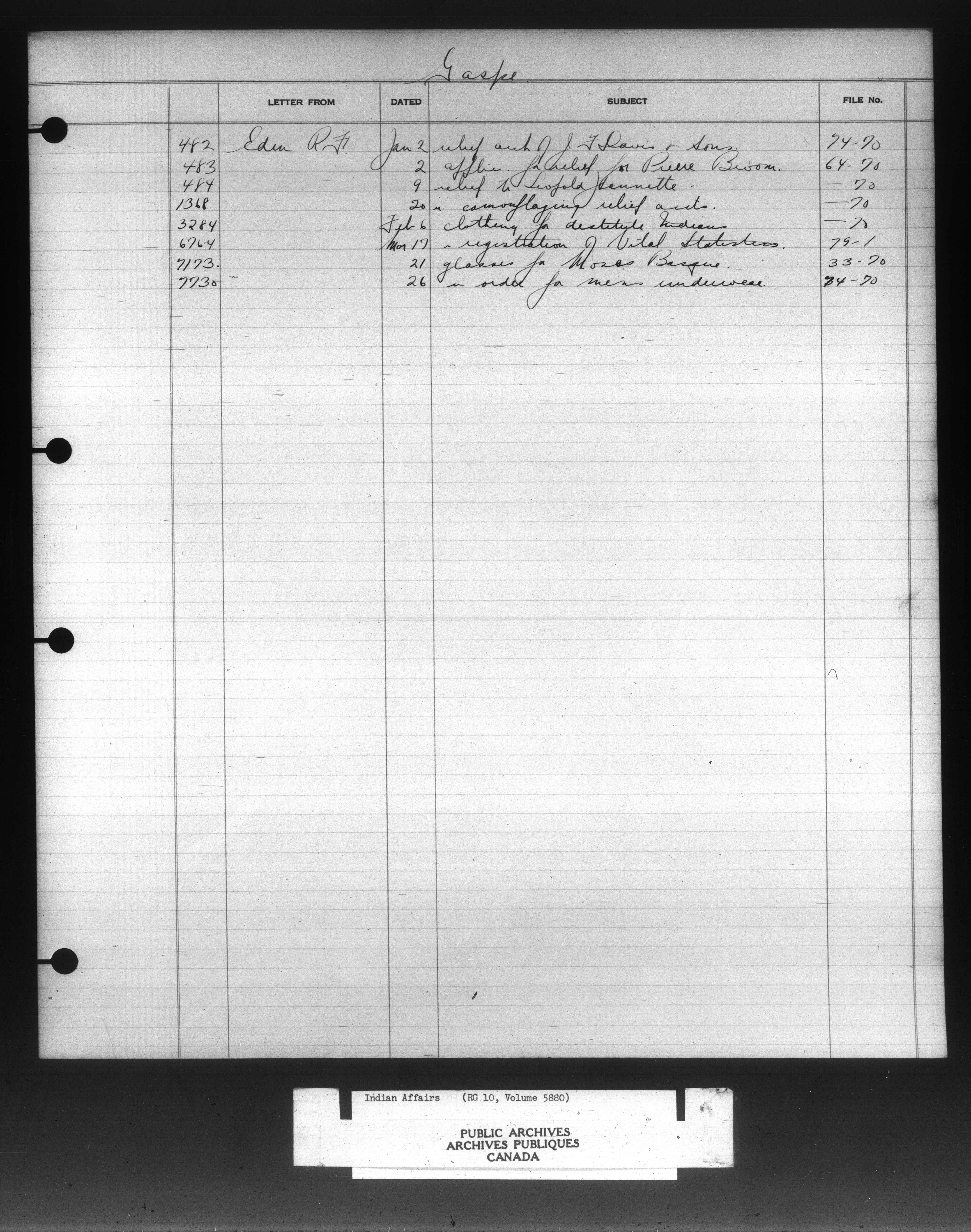 Department of Indian Affairs : Indexed Registers for Eastern Canada - 10921