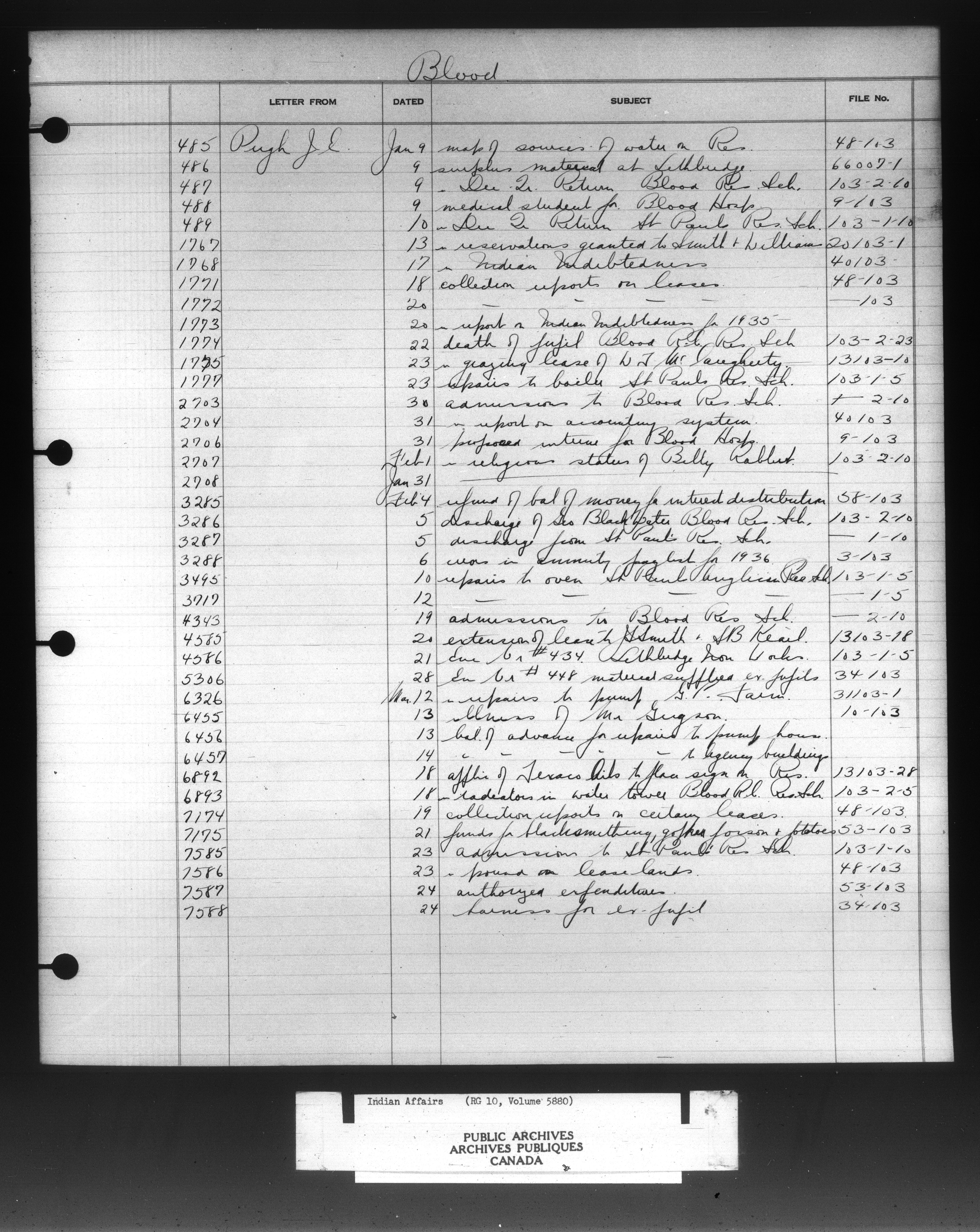 Department of Indian Affairs, Headquarters central registry system :registers, indices and indexed registers : C-10921