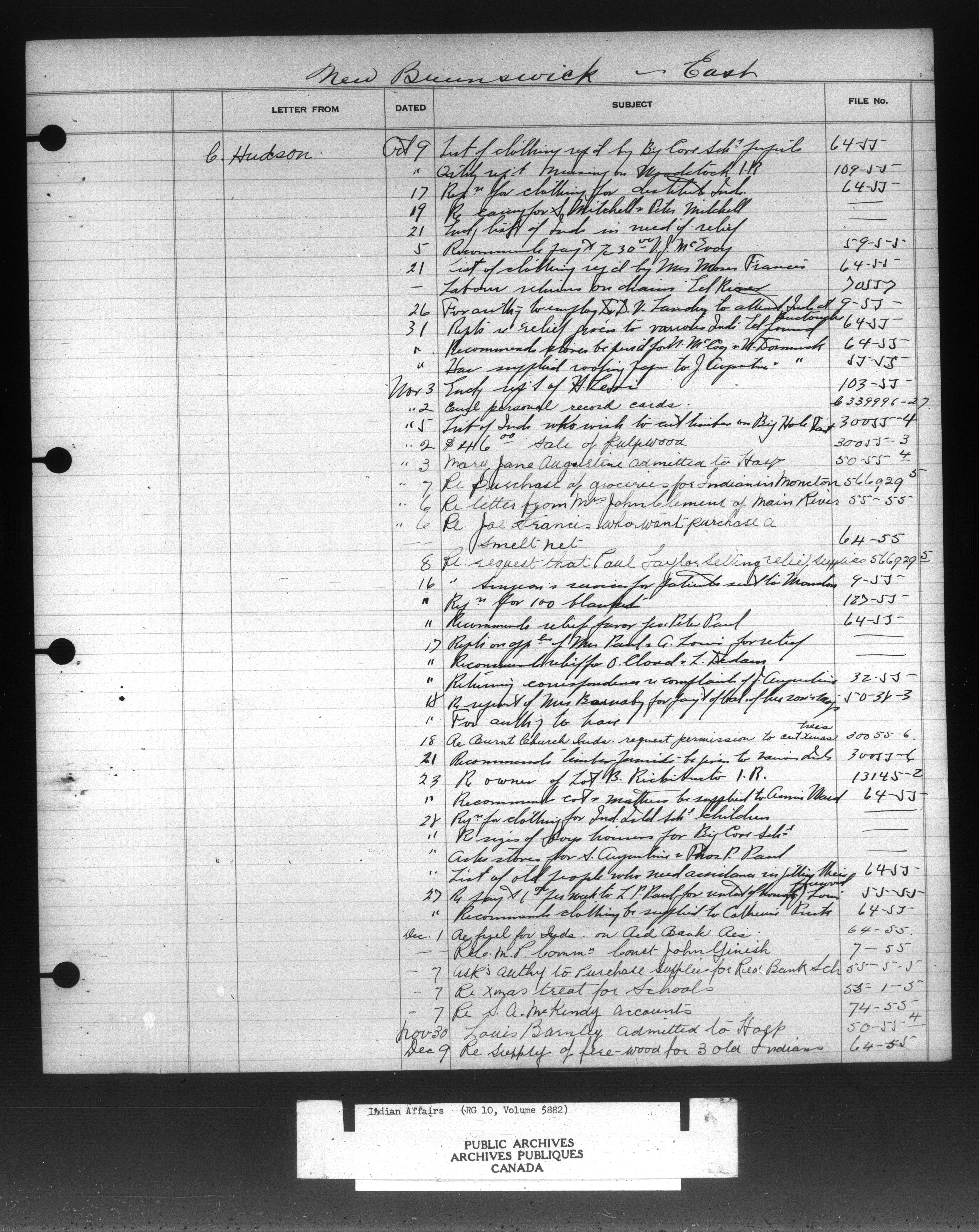 Department of Indian Affairs : Indexed Registers for Eastern Canada - 10921