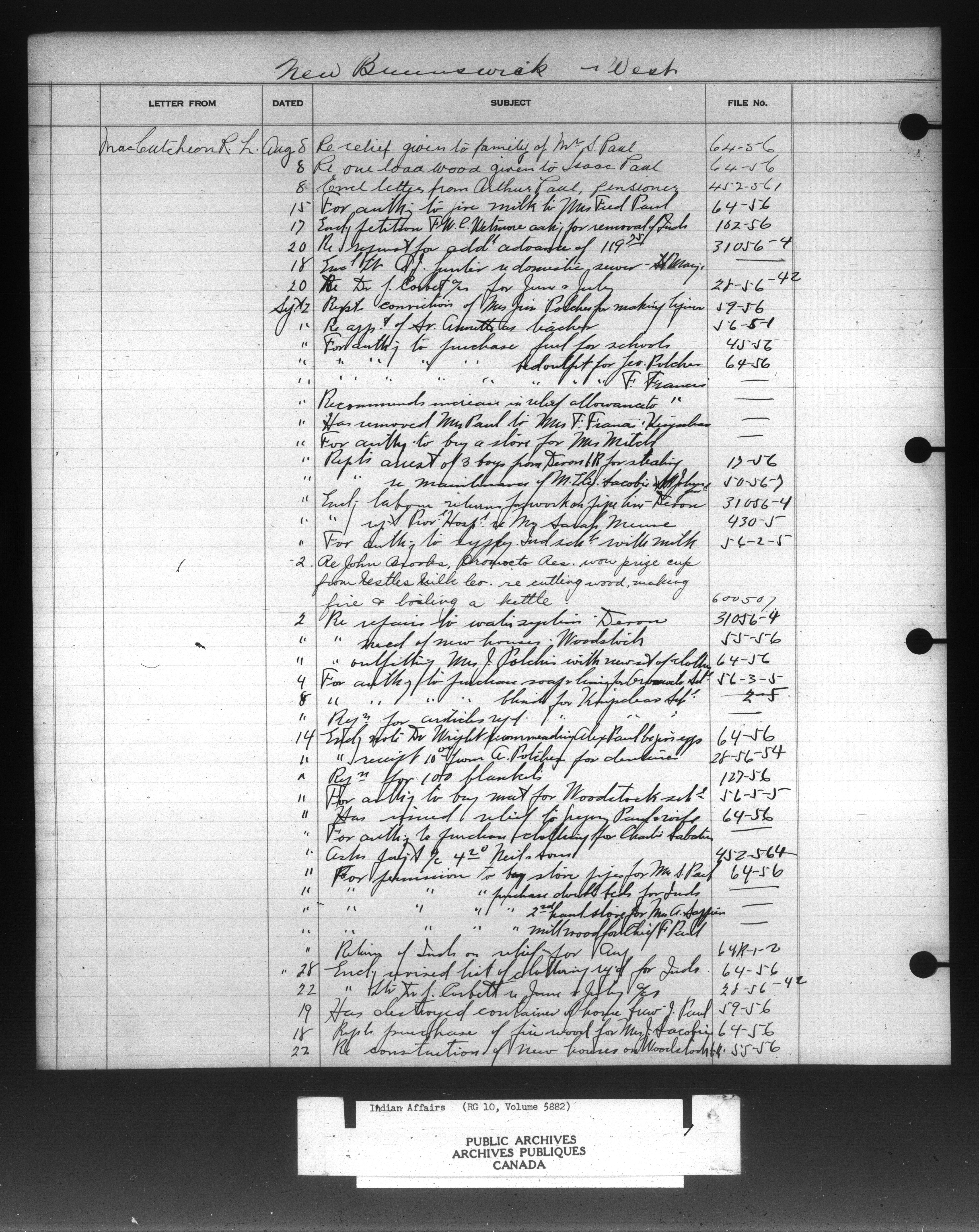 Department of Indian Affairs : Indexed Registers for Eastern Canada - 10921