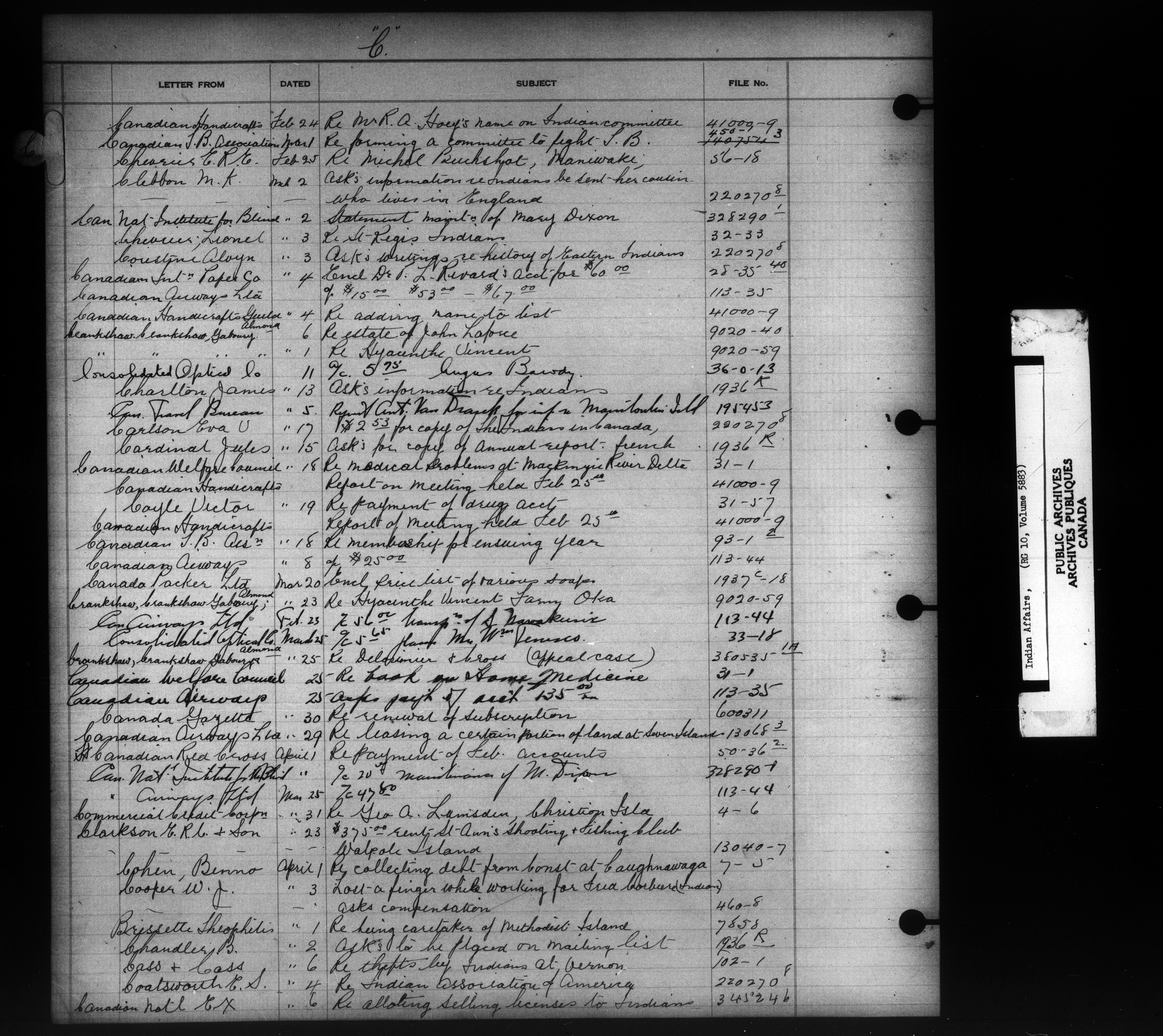 Department of Indian Affairs : Indexed Registers for Eastern Canada - 10922