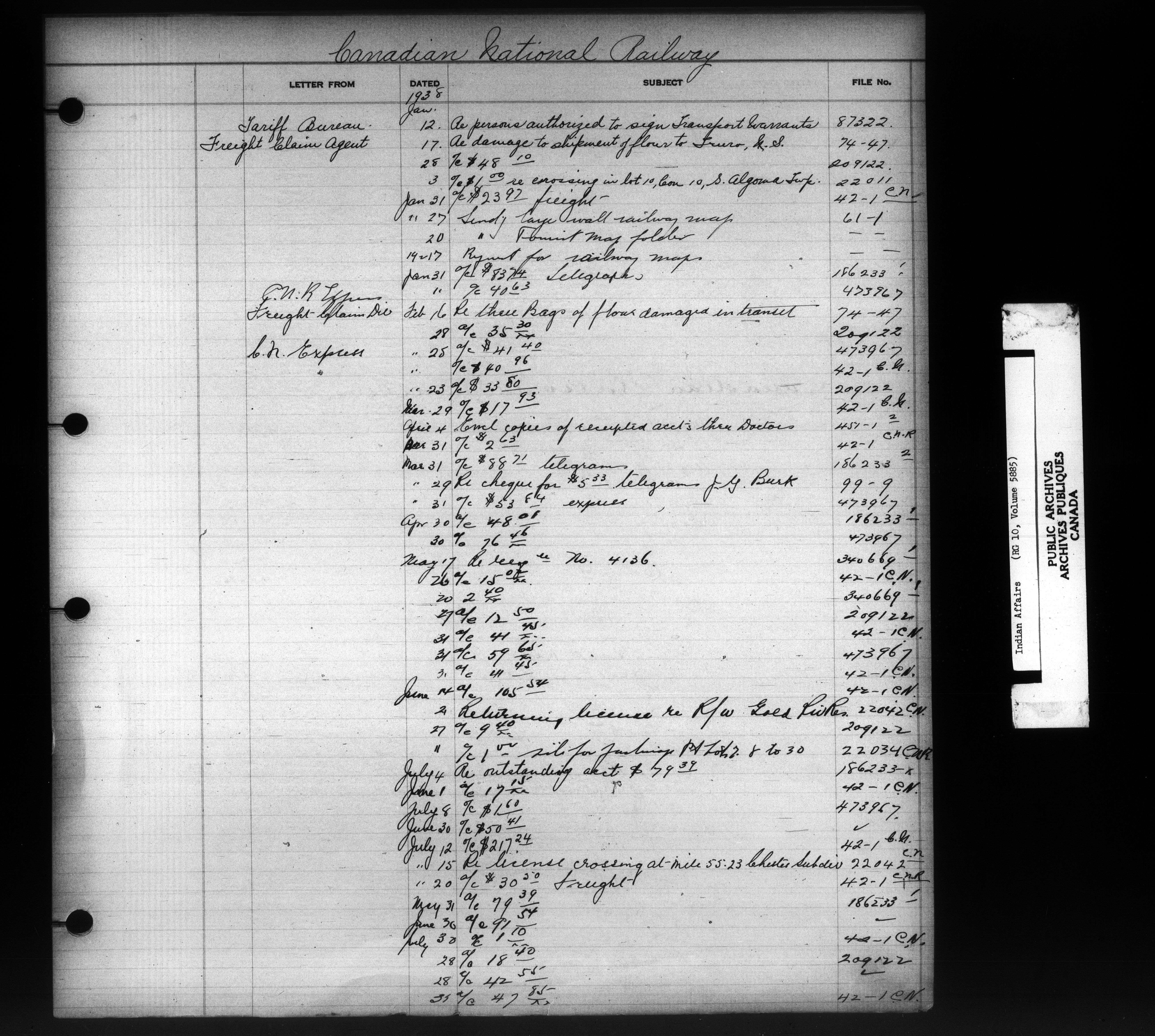 Department of Indian Affairs, Headquarters central registry system :registers, indices and indexed registers : C-10922