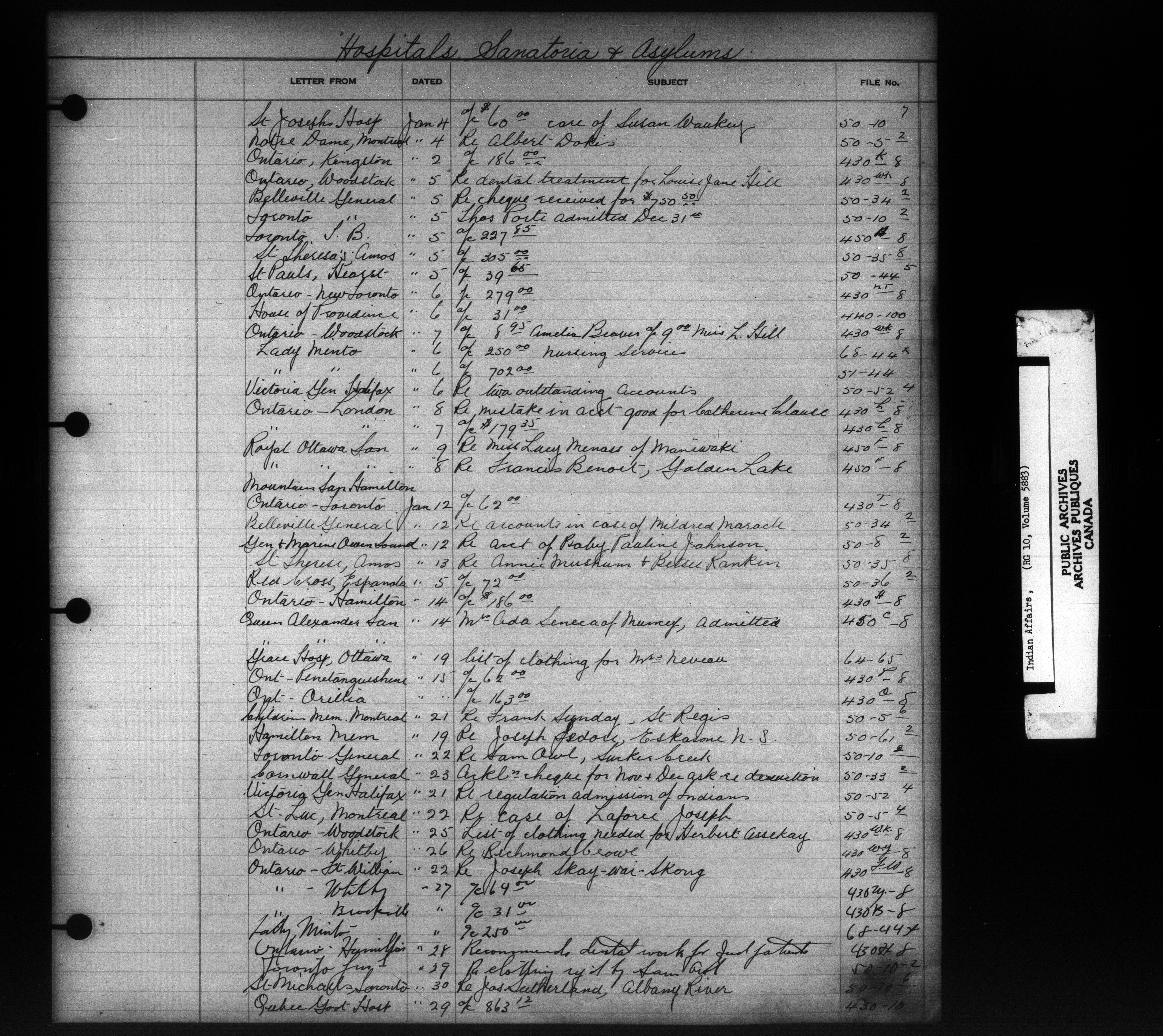 Department of Indian Affairs : Indexed Registers for Eastern Canada - 10922