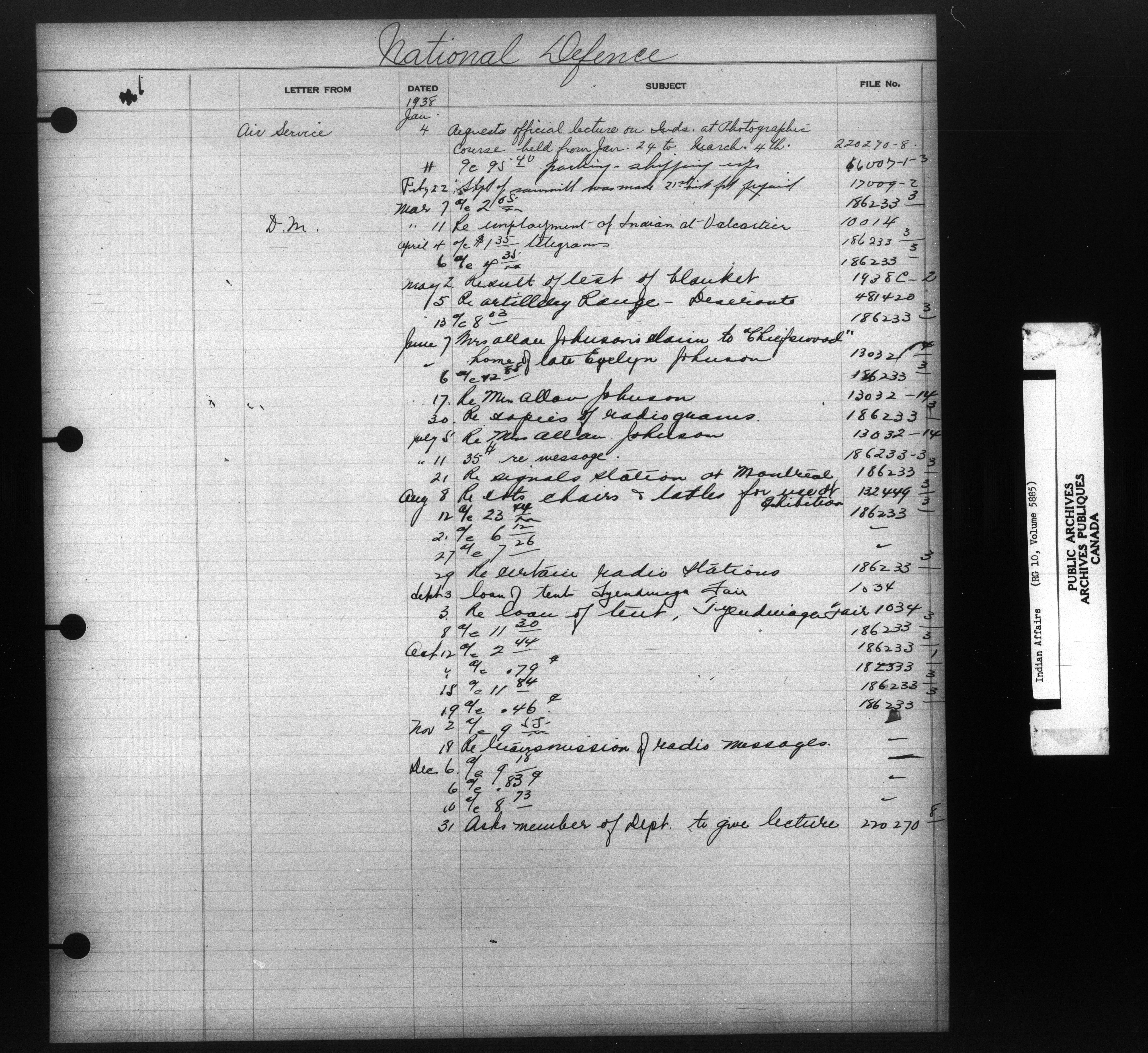 Department of Indian Affairs : Indexed Registers for Eastern Canada - 10923