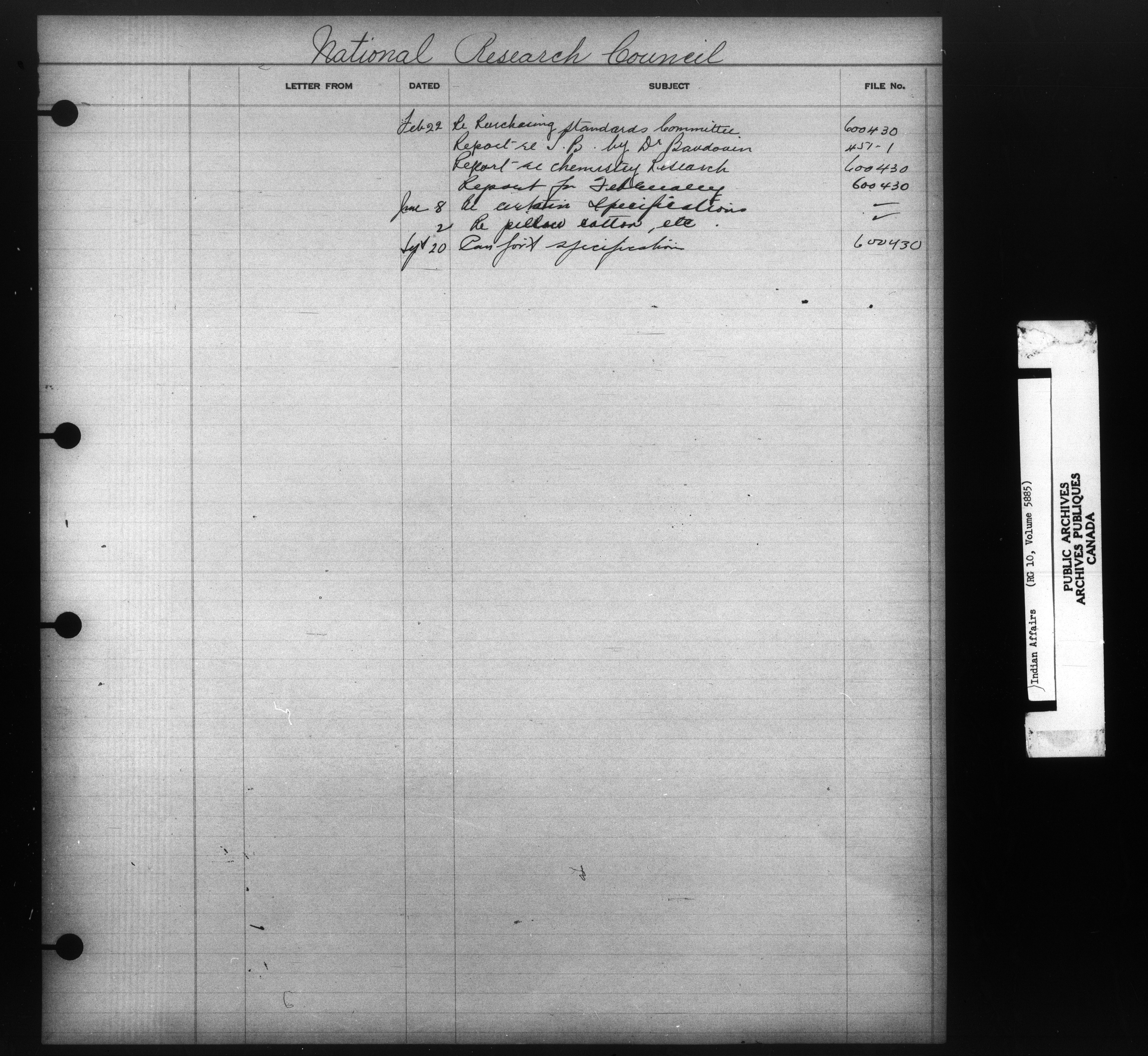 Department of Indian Affairs, Headquarters central registry system :registers, indices and indexed registers : C-10923