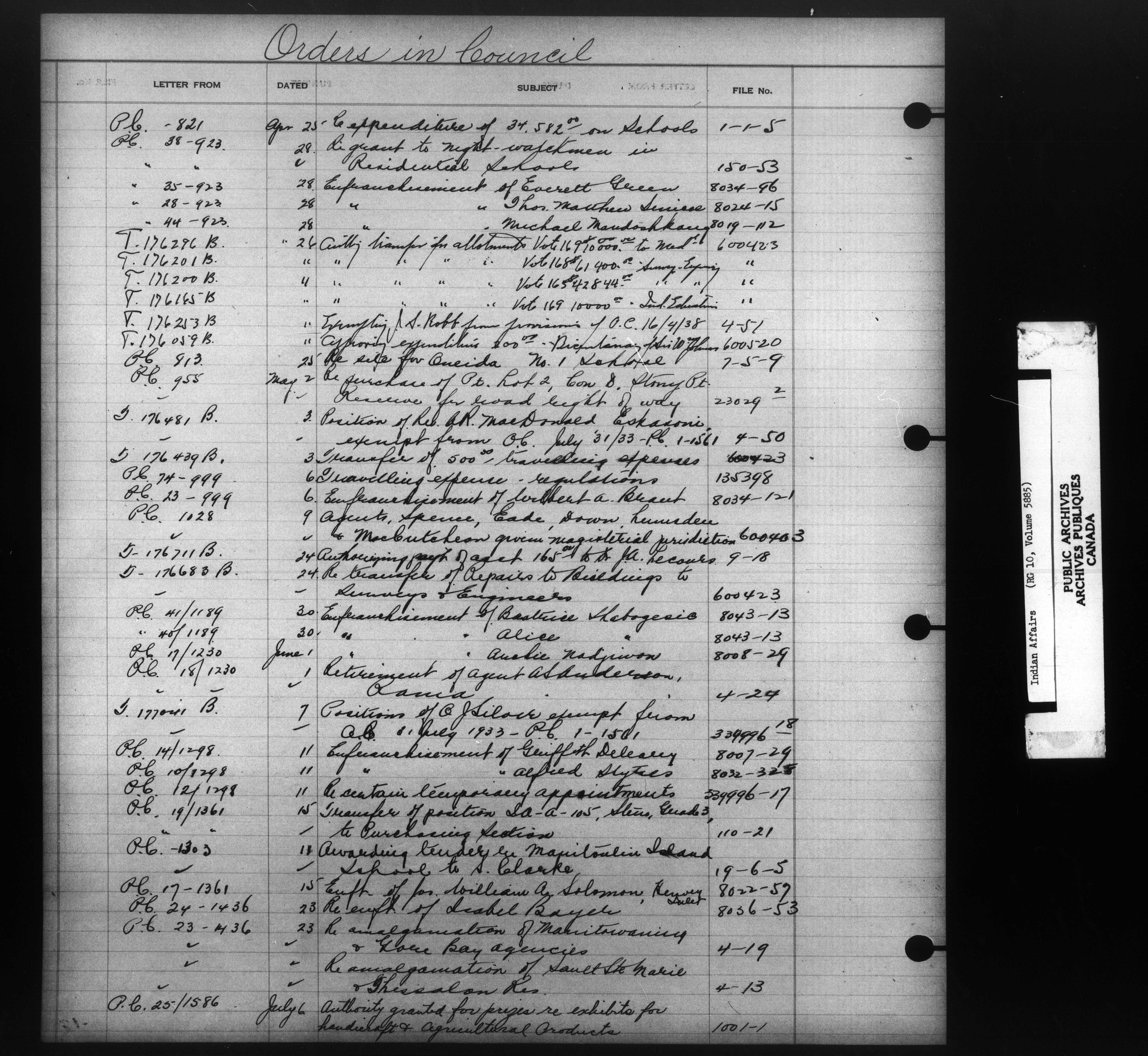 Department of Indian Affairs, Headquarters central registry system :registers, indices and indexed registers : C-10923