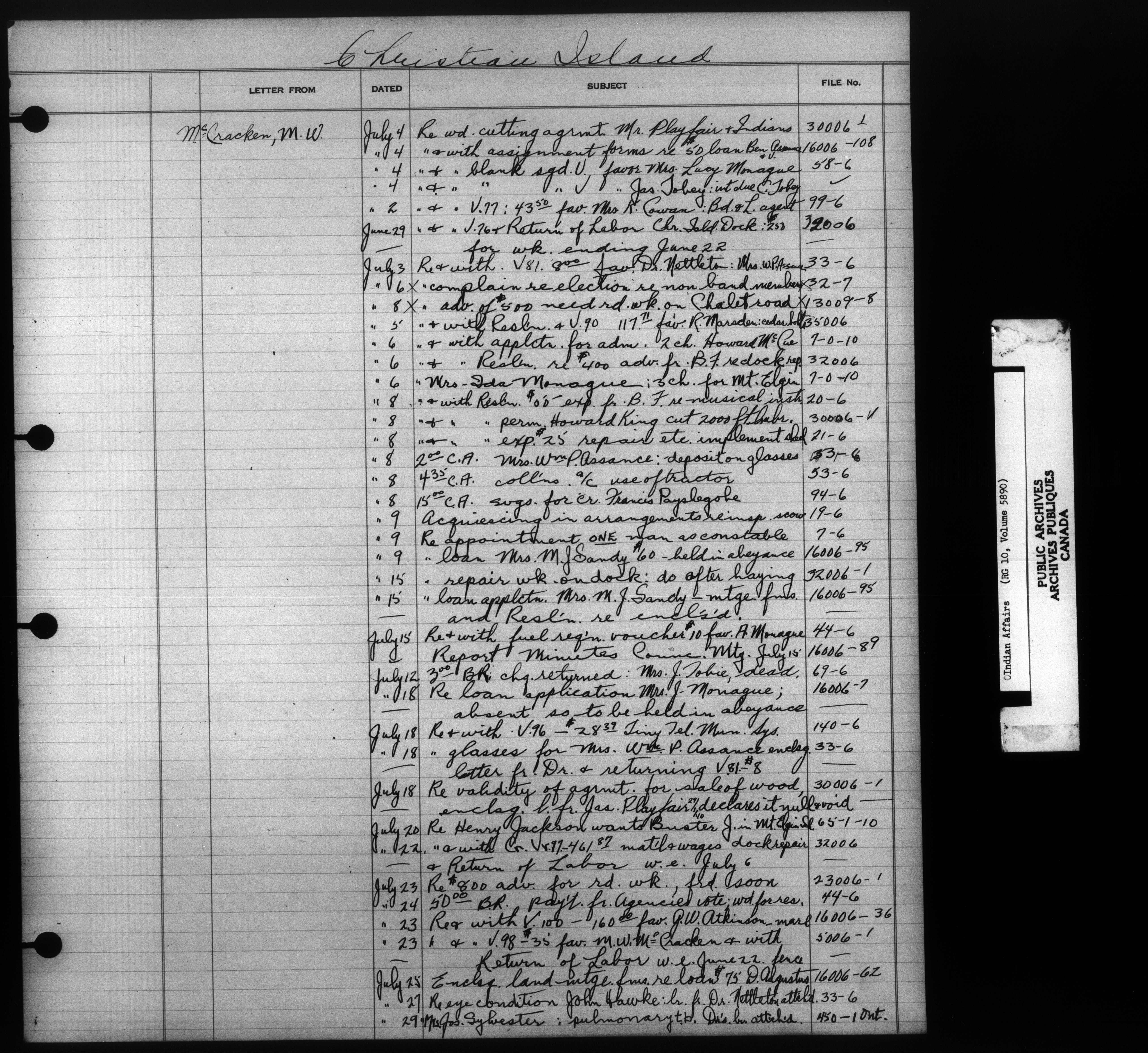 Department of Indian Affairs : Indexed Registers for Eastern Canada - 10924
