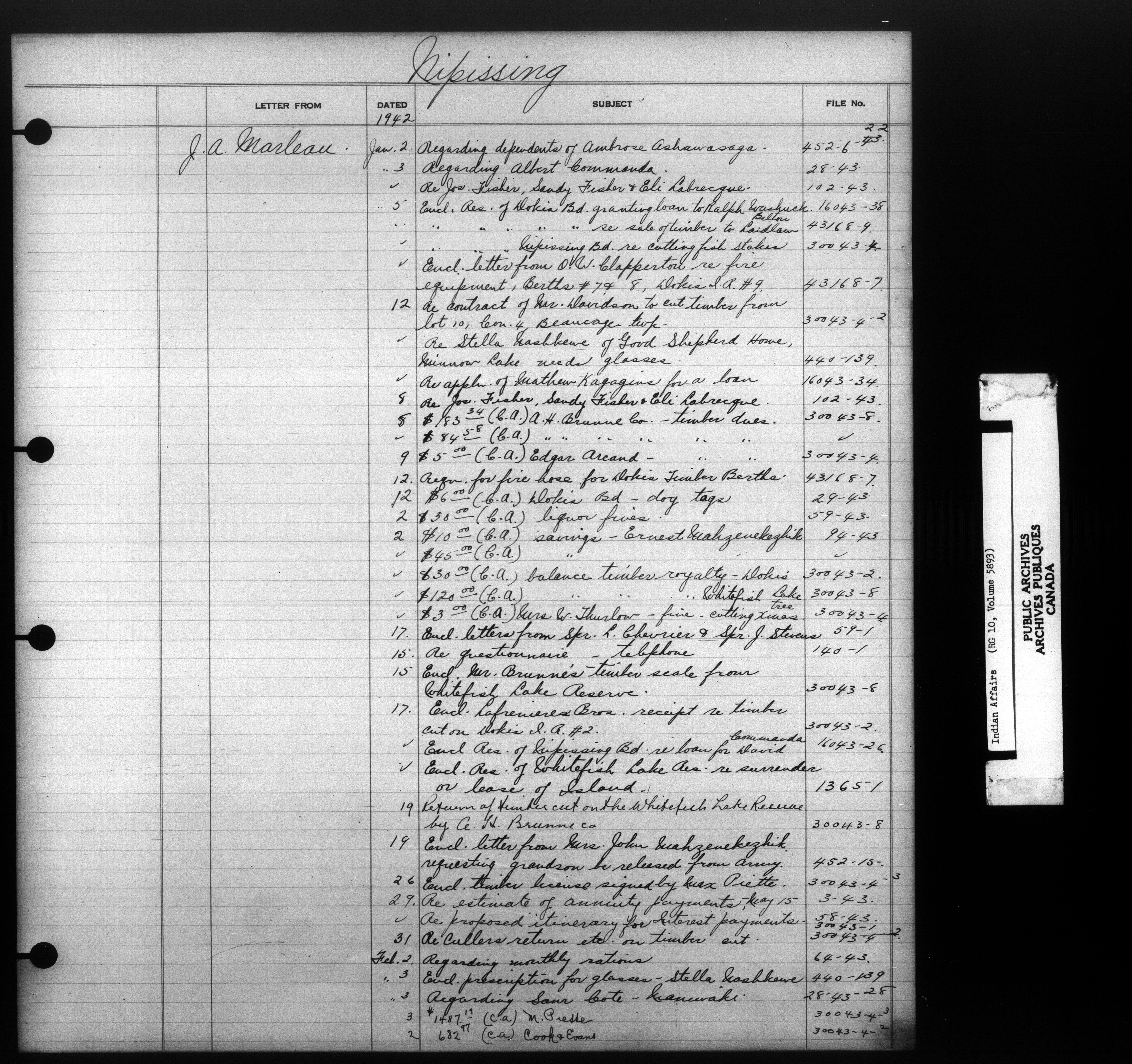 Department of Indian Affairs : Indexed Registers for Eastern Canada - 10926