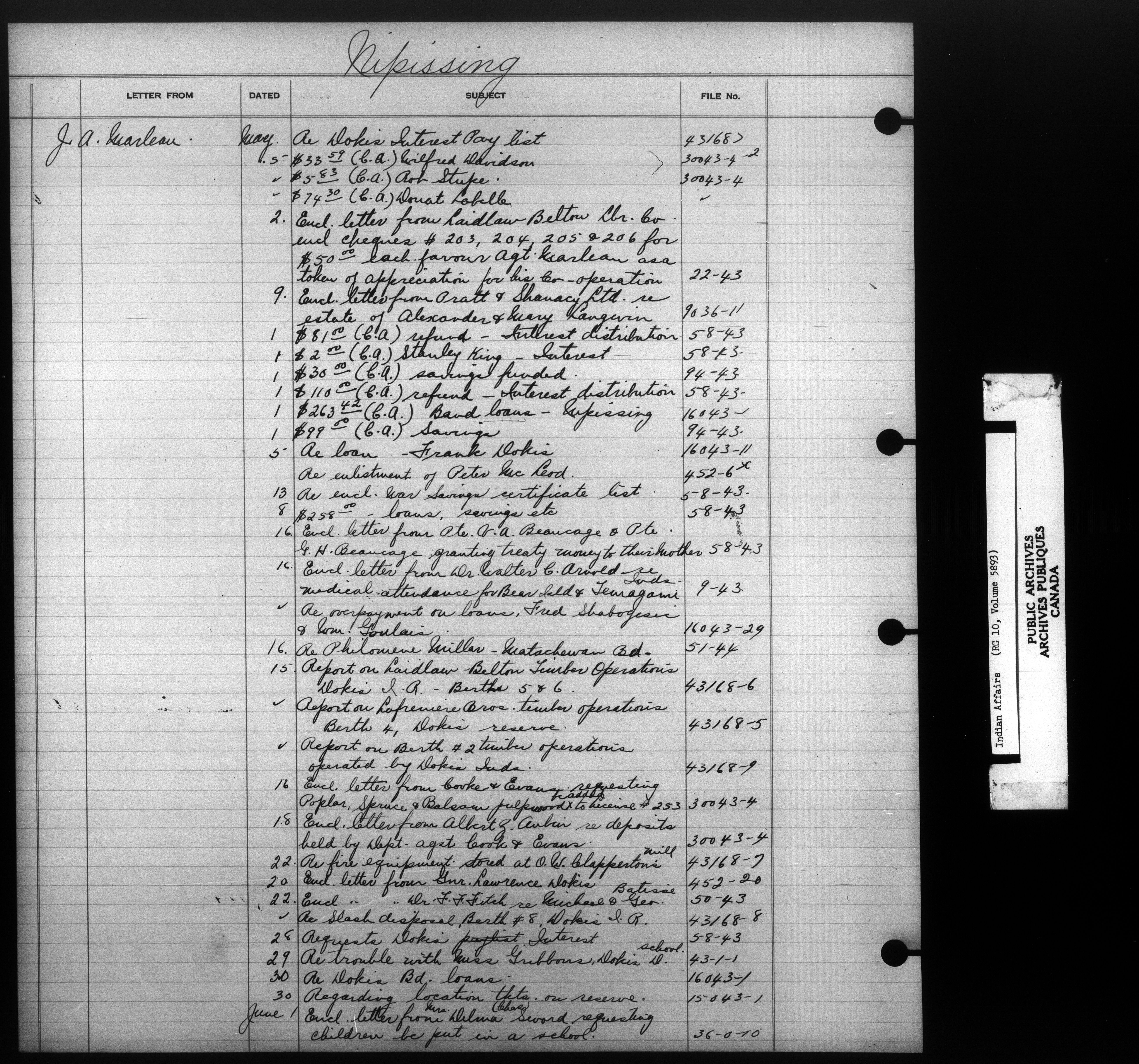 Department of Indian Affairs, Headquarters central registry system :registers, indices and indexed registers : C-10926