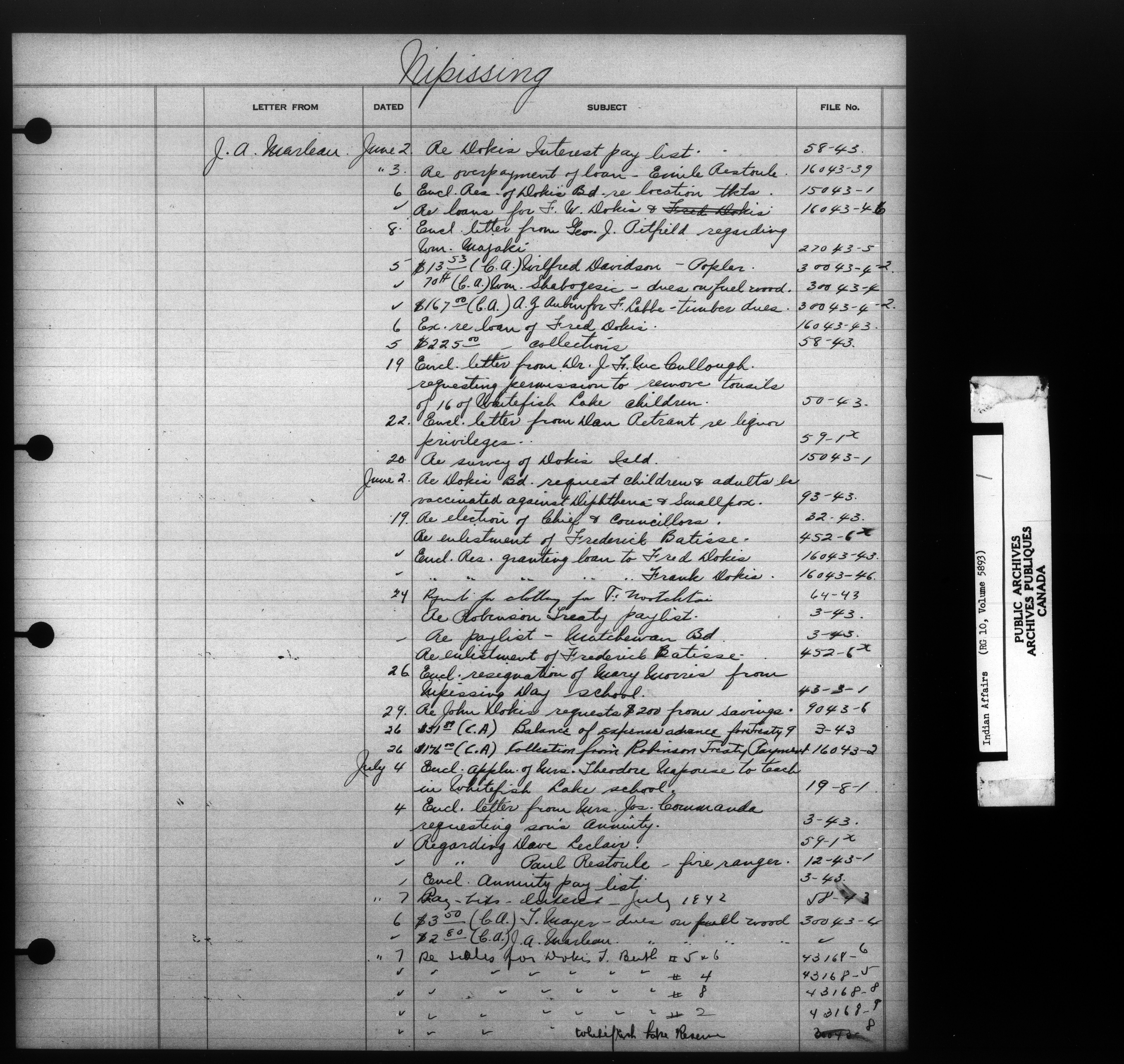 Department of Indian Affairs : Indexed Registers for Eastern Canada - 10926