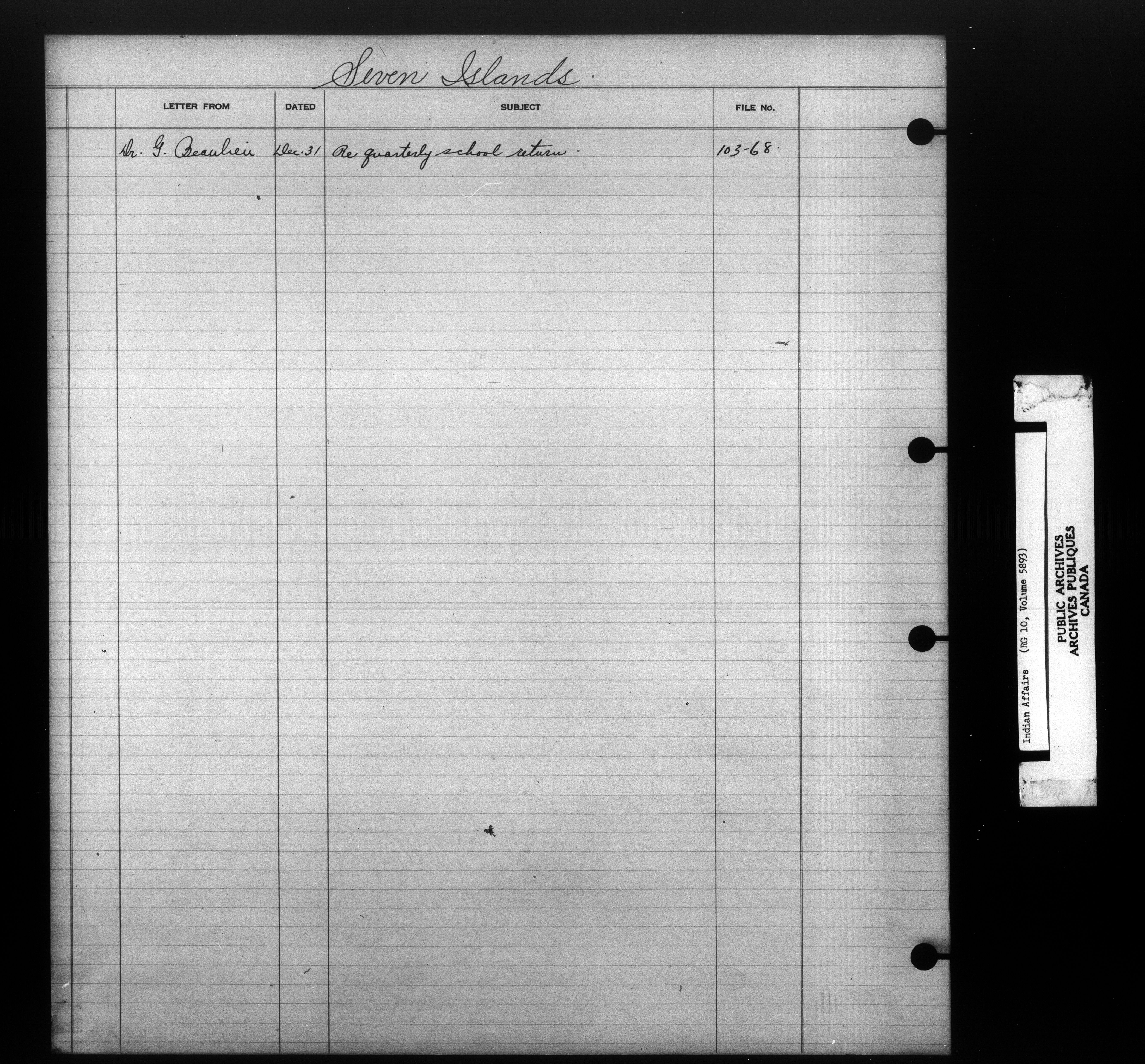 Department of Indian Affairs : Indexed Registers for Eastern Canada - 10927