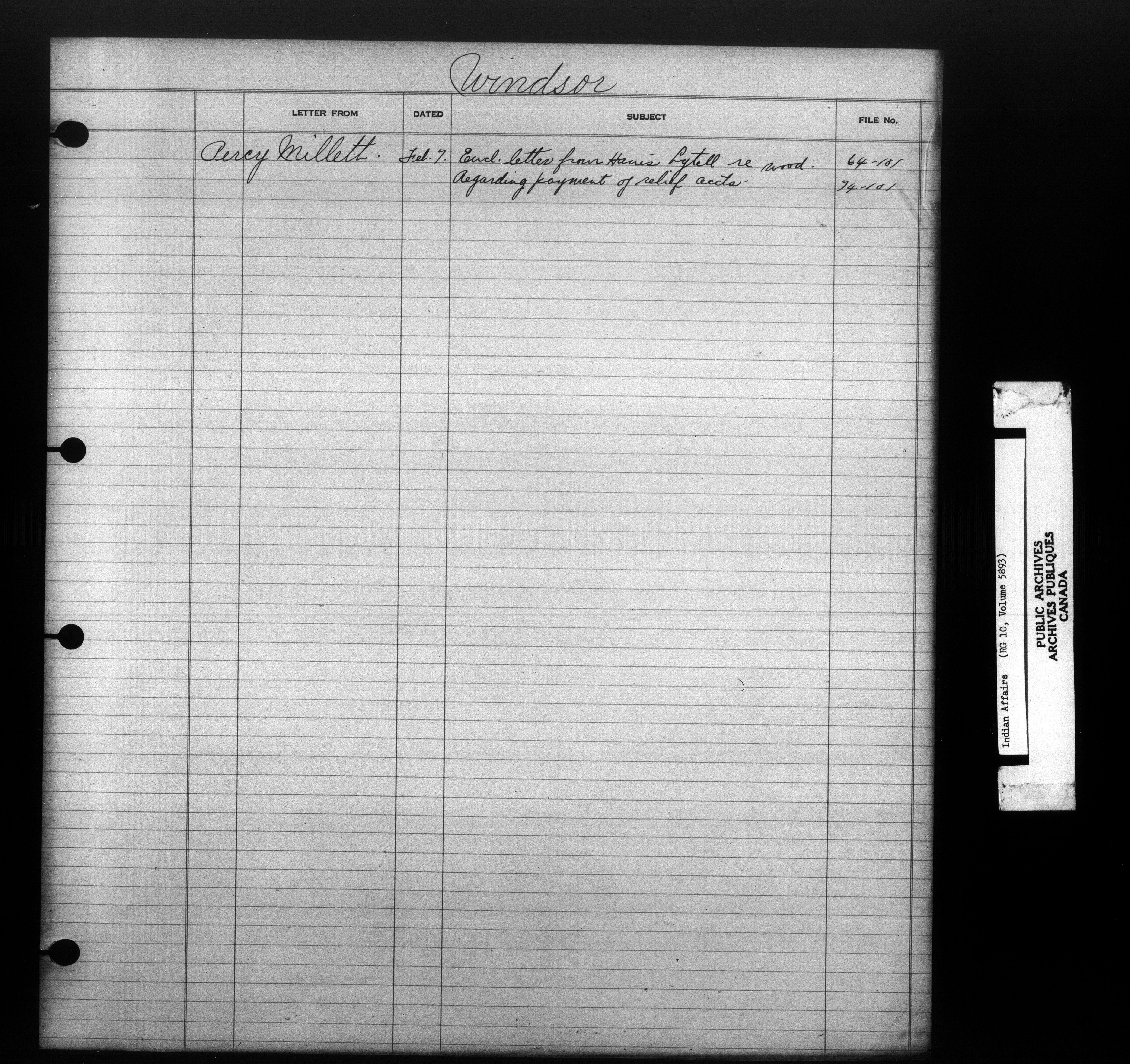 Department of Indian Affairs : Indexed Registers for Eastern Canada - 10927